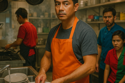 Mainit at mausok ang likod ng kusina, mabigat ang singaw ng mantika at sabay-sabay na kalansing ng kawali at pinggan. Sa tabi ng gripo, nakatayo ang lalaking naka-abong t-shirt at kahel na apron, kama...