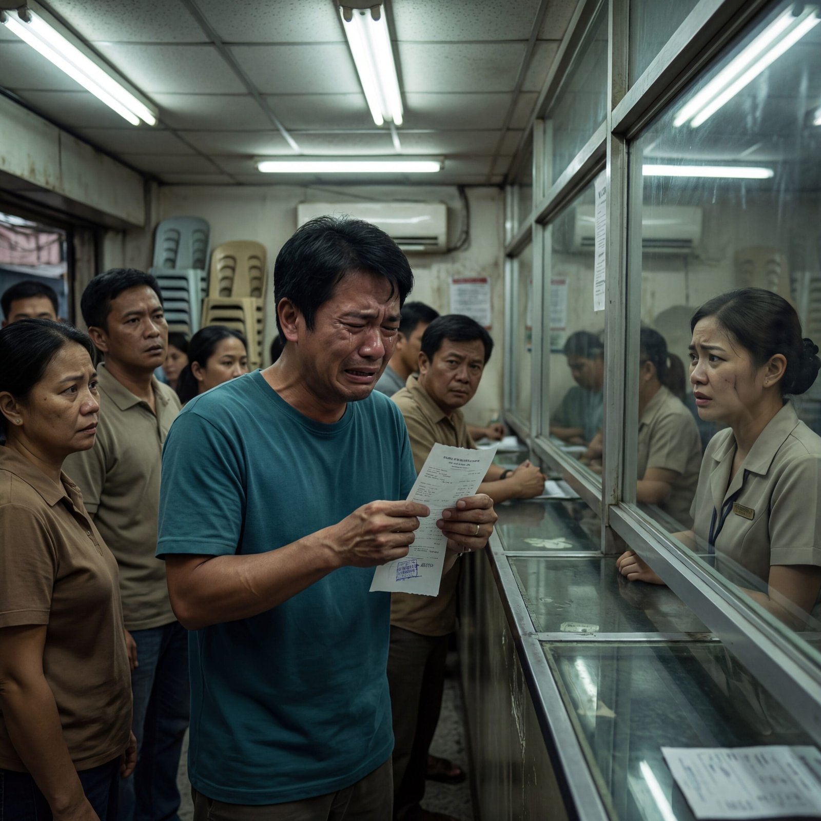 Siksikan sa loob ng remittance center. Humahalo ang amoy ng pawis at lumang aircon, habang kumikislap ang ilaw na parang laging puyat. Sa harap ng salamin ng teller, nakatayo si LITO, OFW na kakauwi lang mula abroad para sa biglaang bakasyon—dahil sa mensaheng halos pumutol sa kanyang hininga: “Pa, ubos na gamot ko.”