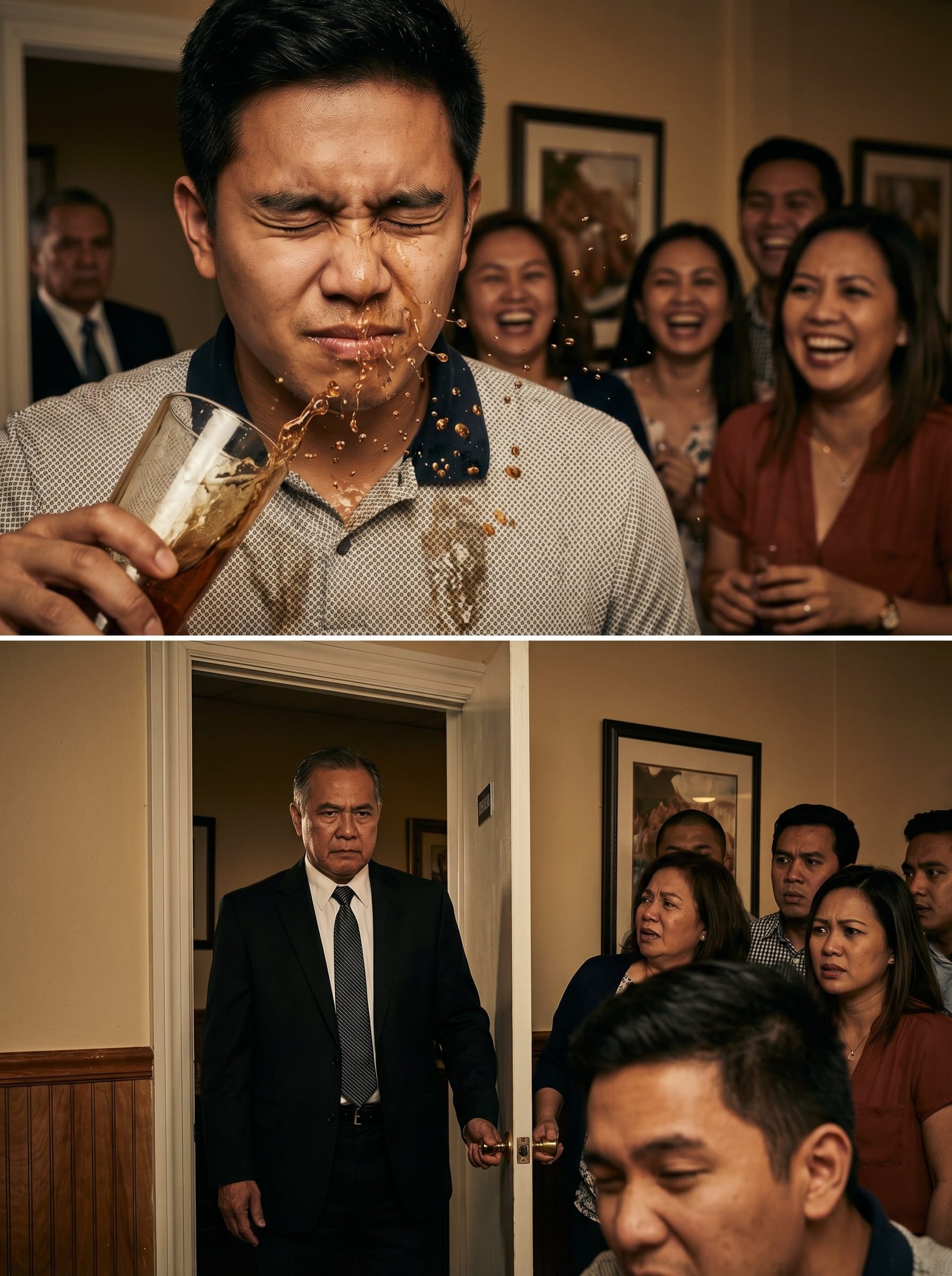 Basang-basa pa ang polo ng anak niya. May patak pa ng softdrink sa panga at leeg nito. Sa sahig, naroon ang nabasag na yelo at tumapong inumin. At sa gitna ng eksenang iyon, nakatayo si Roland—hawak pa ang baso, nakangisi pa sana, ngunit unti-unting namumuti ang mukha.