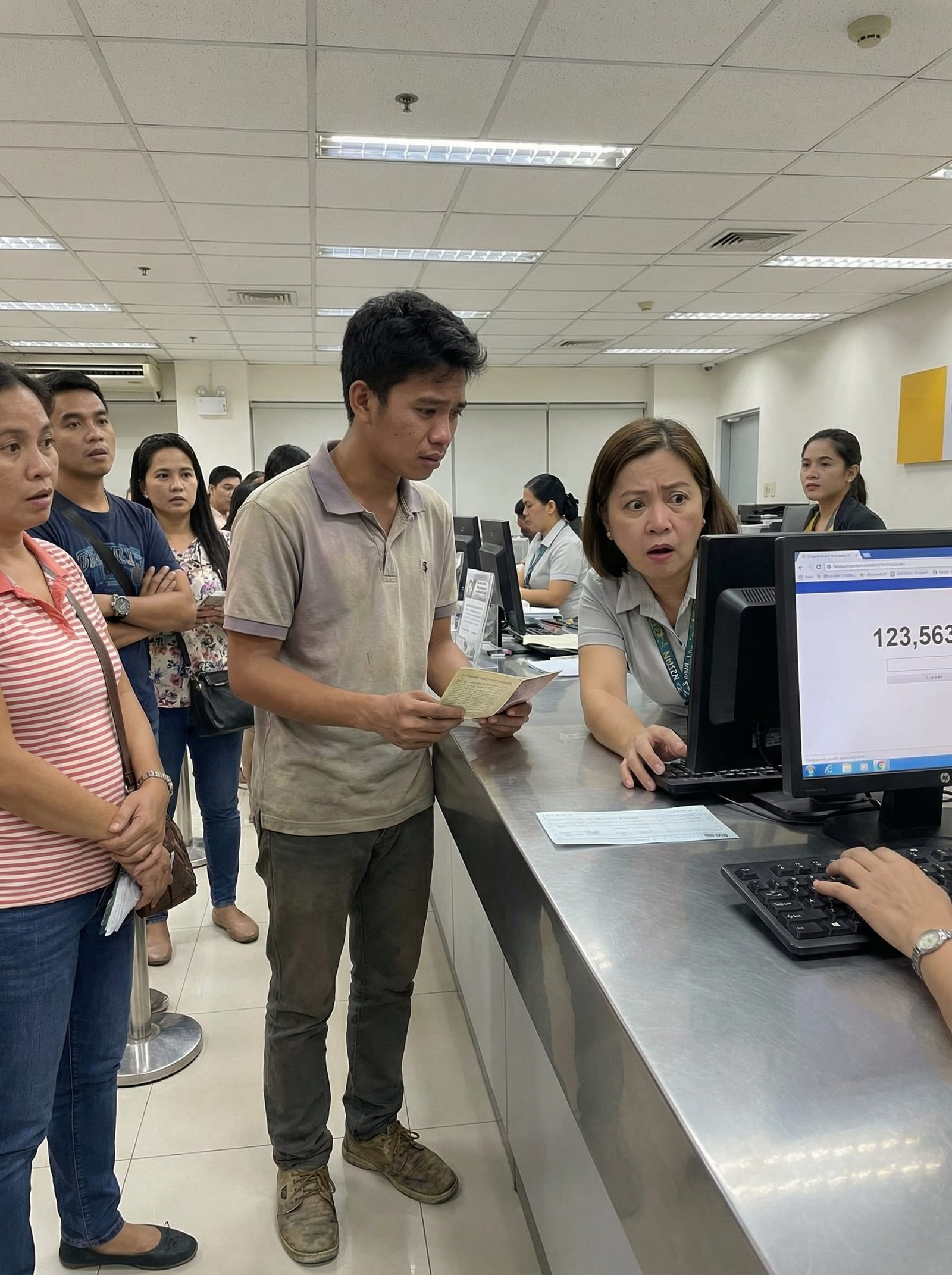Hindi agad nakasagot ang teller. Lumapit siya nang bahagya sa monitor, saka muling tiningnan ang passbook para tiyaking tama ang account number. Pagkatapos, muli niyang sinilip ang screen.