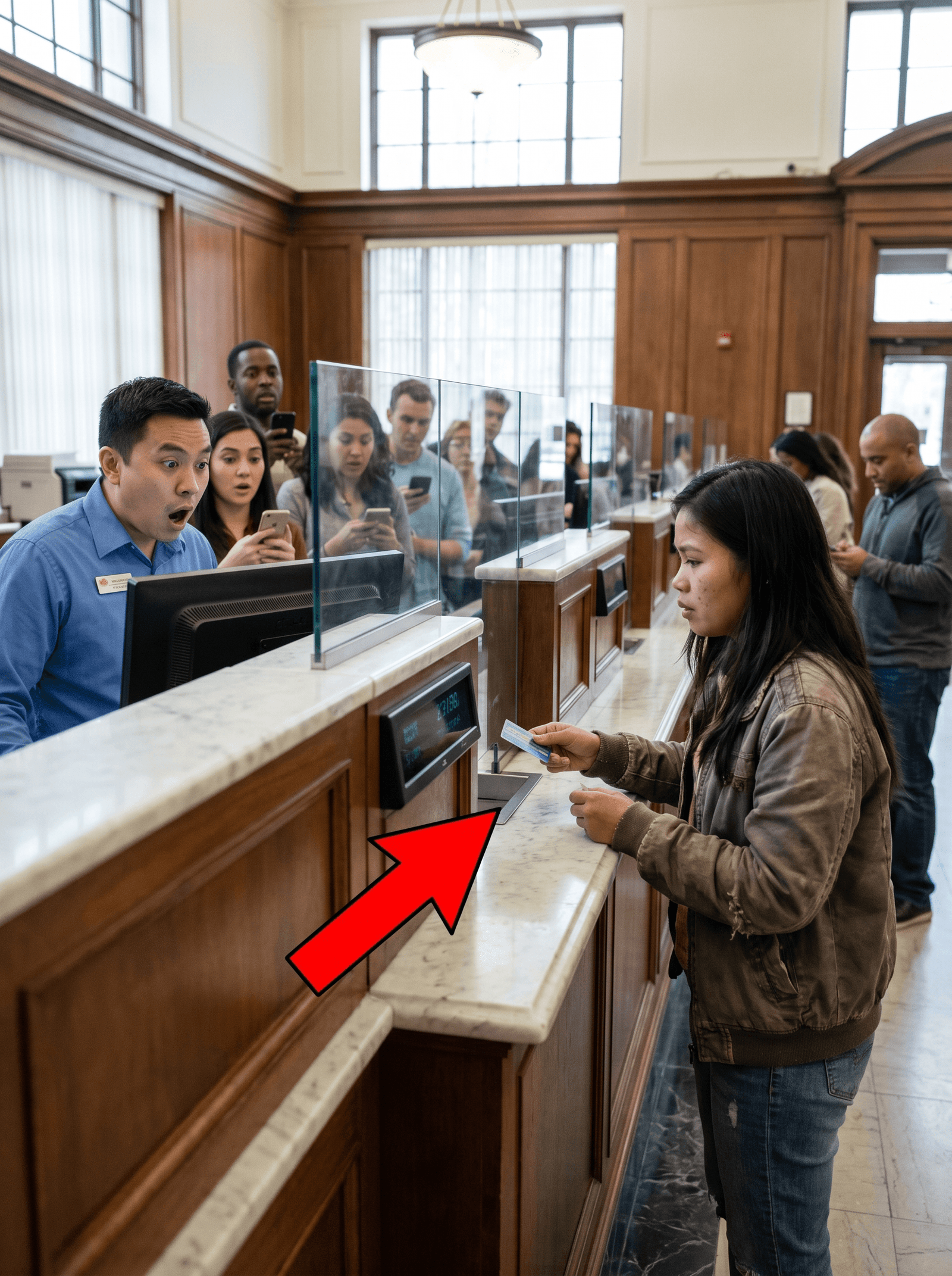 Sa likod, may ilang napasinghap. Ang teller na si Leo ay tuluyang namutla. Hindi niya maipinta ang mukha niya—hiya, gulat, at kaba ang sabay-sabay na bumalot sa kanya.
