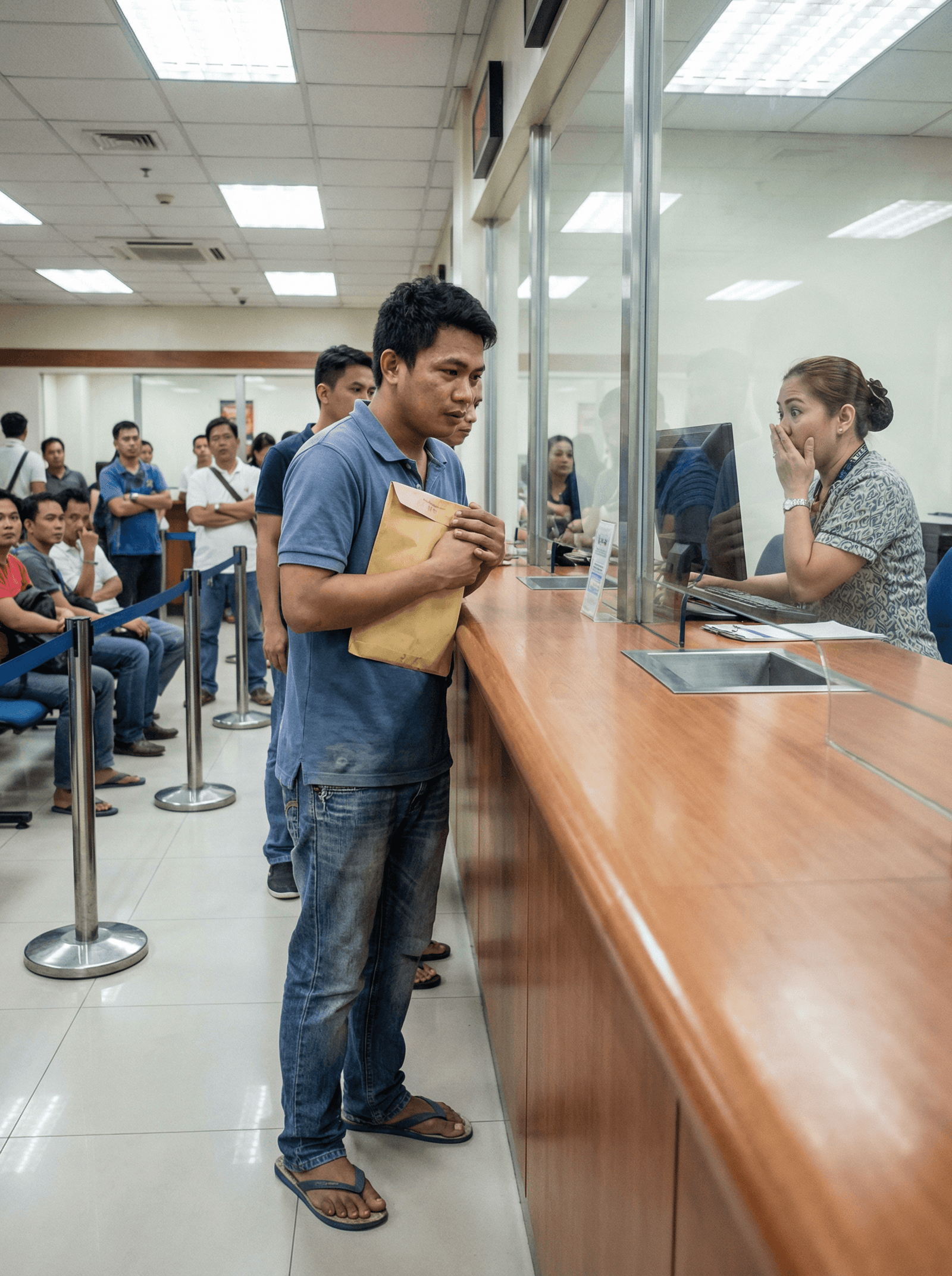 Pagdating ni Joel sa unahan ng pila, maingat niyang inilapag ang brown envelope sa counter. Sa likod ng salamin ay naroon ang isang teller na mukhang abalang-abala, ngunit halata ring mabilis magtaas ng kilay sa mga customer na sa tingin niya’y mabagal umintindi.