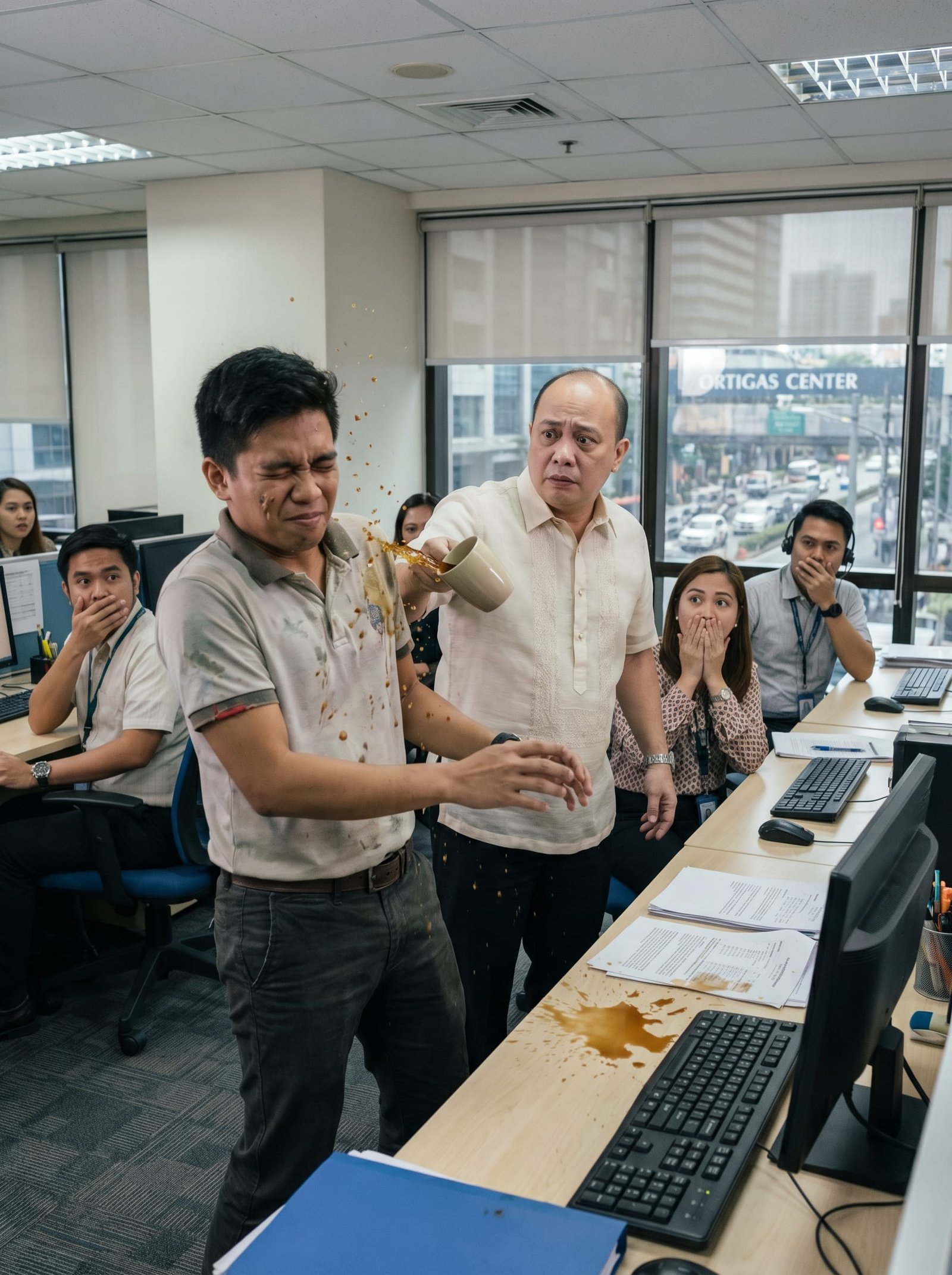 Napapikit si Elias sa sakit. Tumama sa leeg at polo niya ang mainit na likido. Tumalsik din ang kape sa mesa, keyboard, at mga papeles. May ilang empleyadong napatakip ng bibig. Ang iba’y tuluyang napatayo sa gulat. Wala ni isa ang nag-akalang aabot si Barrera sa ganoon.
