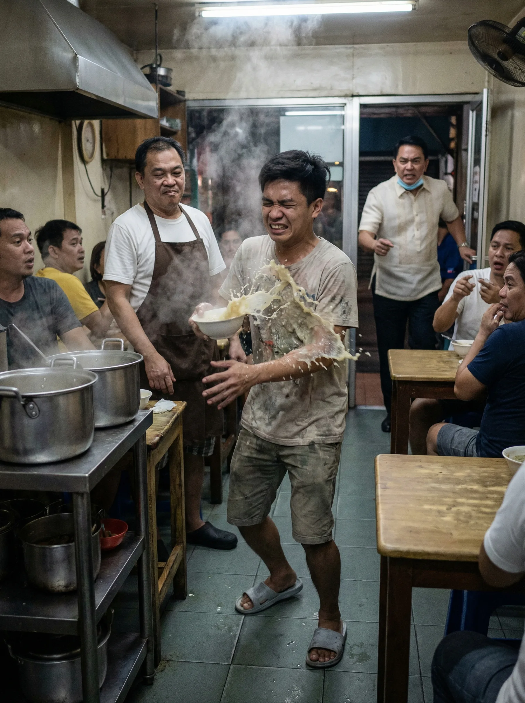 Pagkakita nila kay Enzo na may bakas ng paso at lugaw sa dibdib, halos mapatigil ang tibok ng lahat sa loob ng lugawan.
