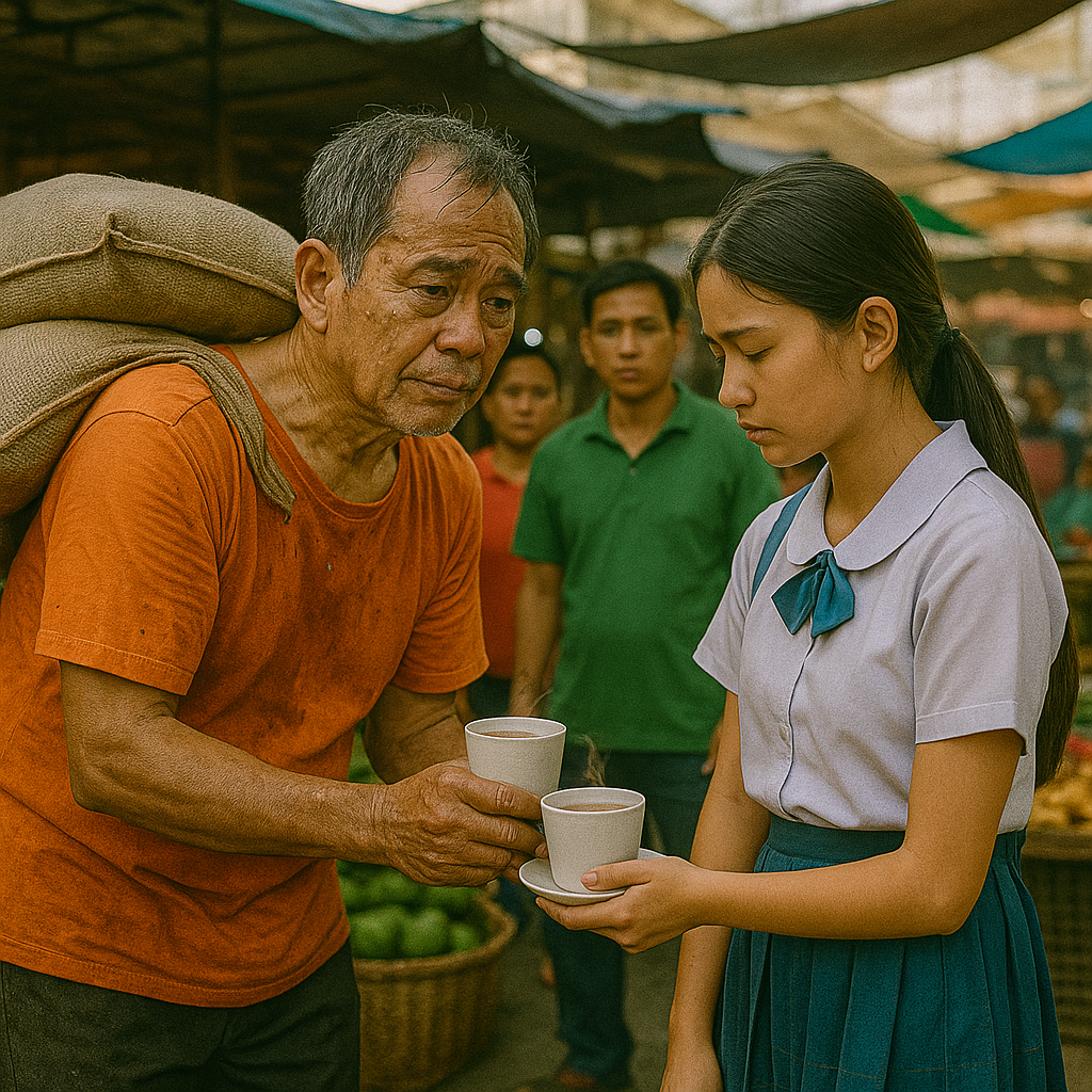 Humawak siya sa kamay ko, ’yung kamay na dati kong tinataguan. “Bakit?” tanong niya, nakangiti. “Anong lahat?” Naluha ako. “Sa hiya ko. Sa pag-iwas ko. Sa… sa kape kahapon.” Tinapik niya ang kamay ko. “Anak, trabaho lang ’to. Pero ikaw, buhay ko.” Inabot niya ang tasa sa gilid, may usok pa. “Higop ka. Matamis, nilagyan ko ng konting gatas. Hindi ’to pangpalamig ng hiya—pang-init ng loob.” Uminom ako, at parang may natunaw sa gitna ng dibdib ko.