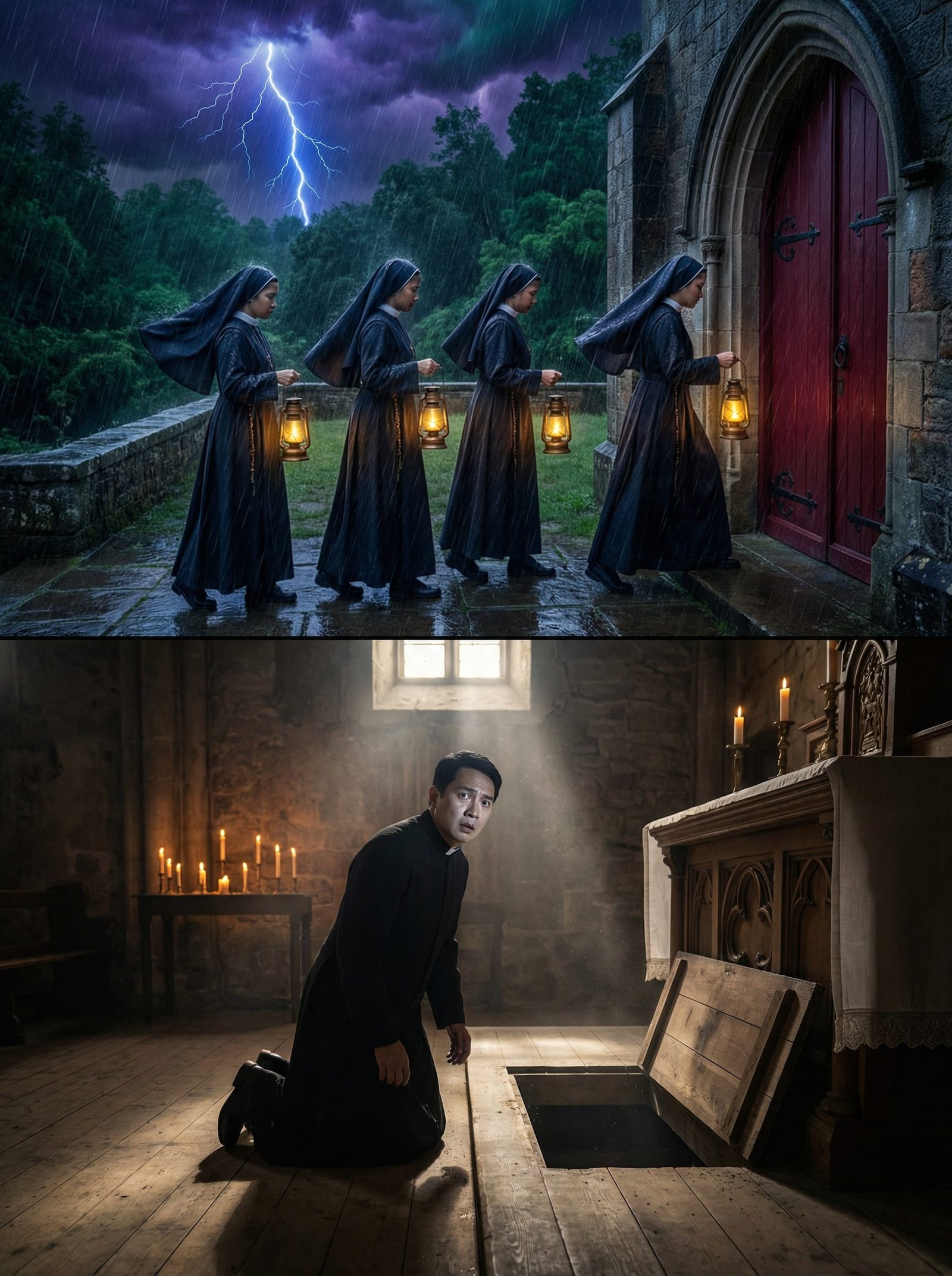 Noong 1981, ang Convento ng San Isidro ay kilala sa katahimikan—hanggang dumating ang gabing binasag ng kulog at kidlat. Sa ilalim ng malakas na ulan, apat na madre—Sister Lucia, Sister Bernadette, Sister Imelda, at Sister Teresa—ang lumabas sa lumang simbahan na dala-dala ang mga gasera. Parang may hinahabol silang lihim na hindi pwedeng marinig ng iba.
