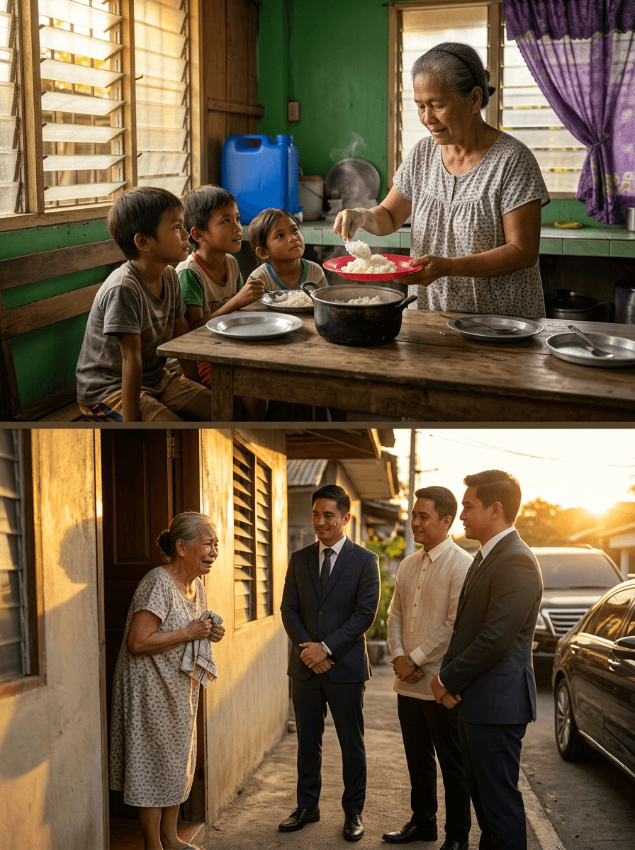 Doon tumayo si Tomas at tumingin sa lumang kaldero. “Nanay,” sabi niya, “yung kanin na pinakain mo sa amin… yun ang naging puhunan ng buhay namin. Kaya bumalik kami—hindi para ipakita ang yaman. Kundi para ibalik ang pagmamahal.”