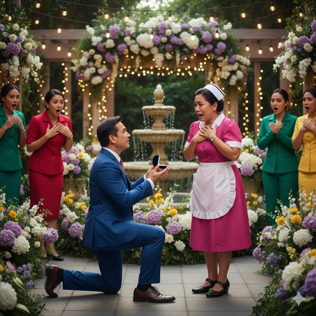 Sa gitna ng hardin na pinalamutian ng putî, lila, at dilaw na hortensia, kumikislap ang mga bumbilyang nakasabit sa pergola habang humuhuni ang maliit na fountain sa likod. Sa mismong gitna, nakaluhod...