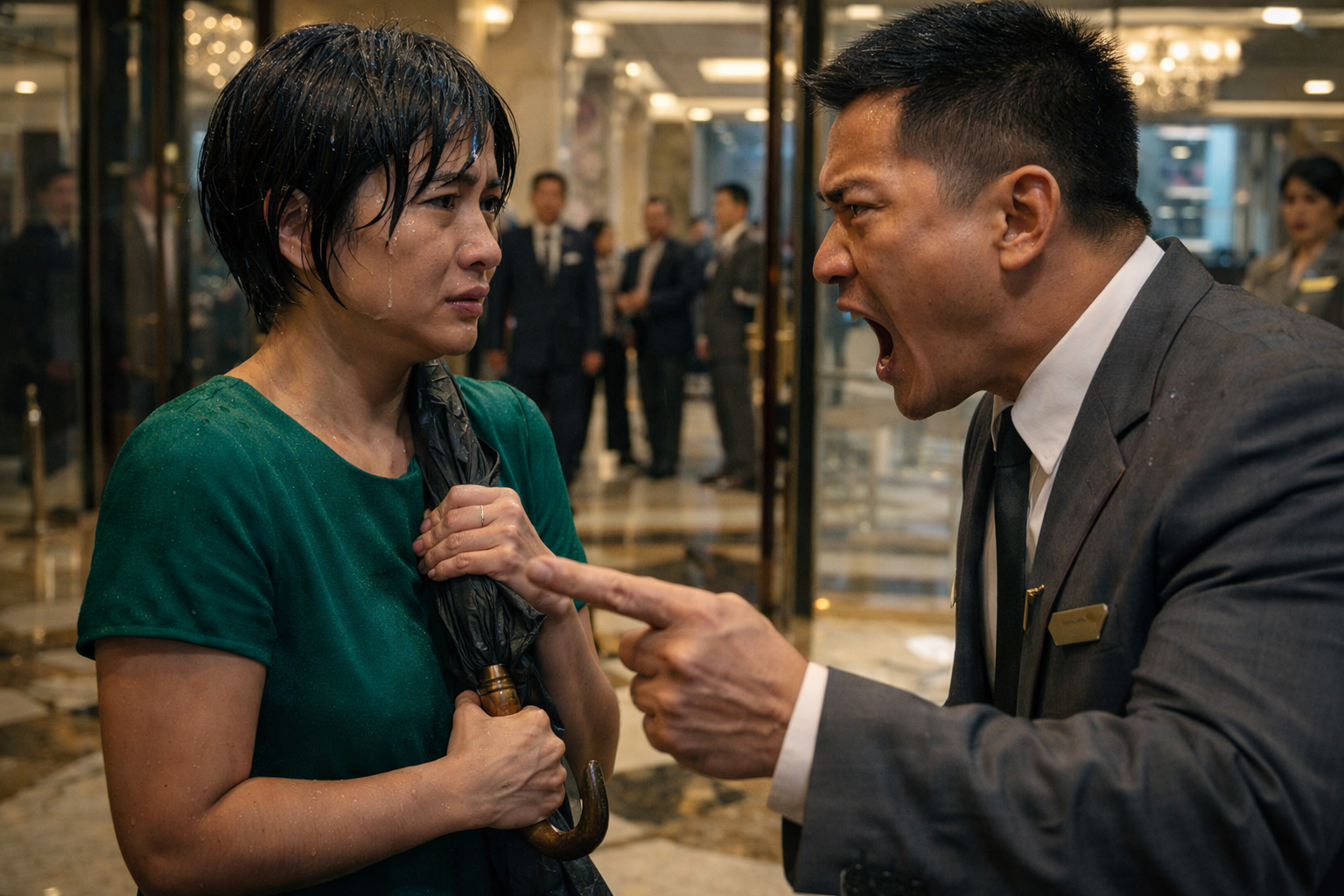 Pero lumapit ang isang hotel staff na naka-suit—si Mr. Dela Cruz, duty manager. Kita sa mukha niya ang inis na parang sanay magtaboy.