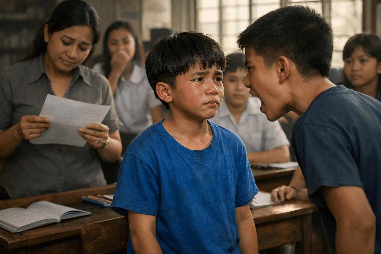 Lumapit ang ilang kaklase kay Basti. Yung iba, nanginginig. “Basti… sorry,” sabi ng isa. “Hindi namin alam.”