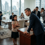 At habang hawak ang mamahaling bag sa isang kamay, hinawakan niya ang balikat ng bata sa kabila. “Ipakita mo sa akin,” mahina niyang sabi.