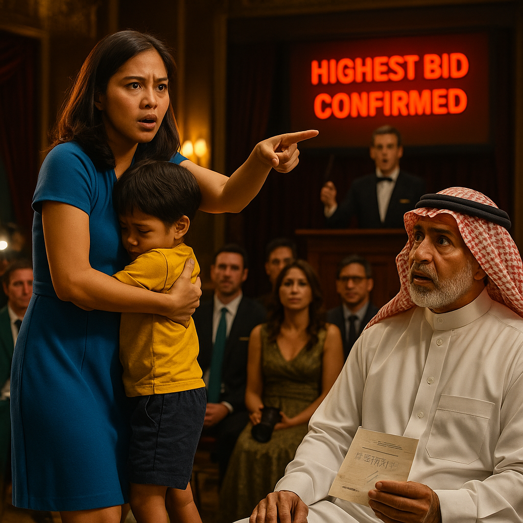 “Here we have Ms. Leah Cruz,” patuloy ng auctioneer. “A devoted single mother with a child suffering from a severe heart condition. Tonight, one generous bidder will secure an exclusive lifetime agreement: full support for the child’s medical needs, housing, and education… and in return, a personal contract with the mother, guided by mutually agreed terms.”