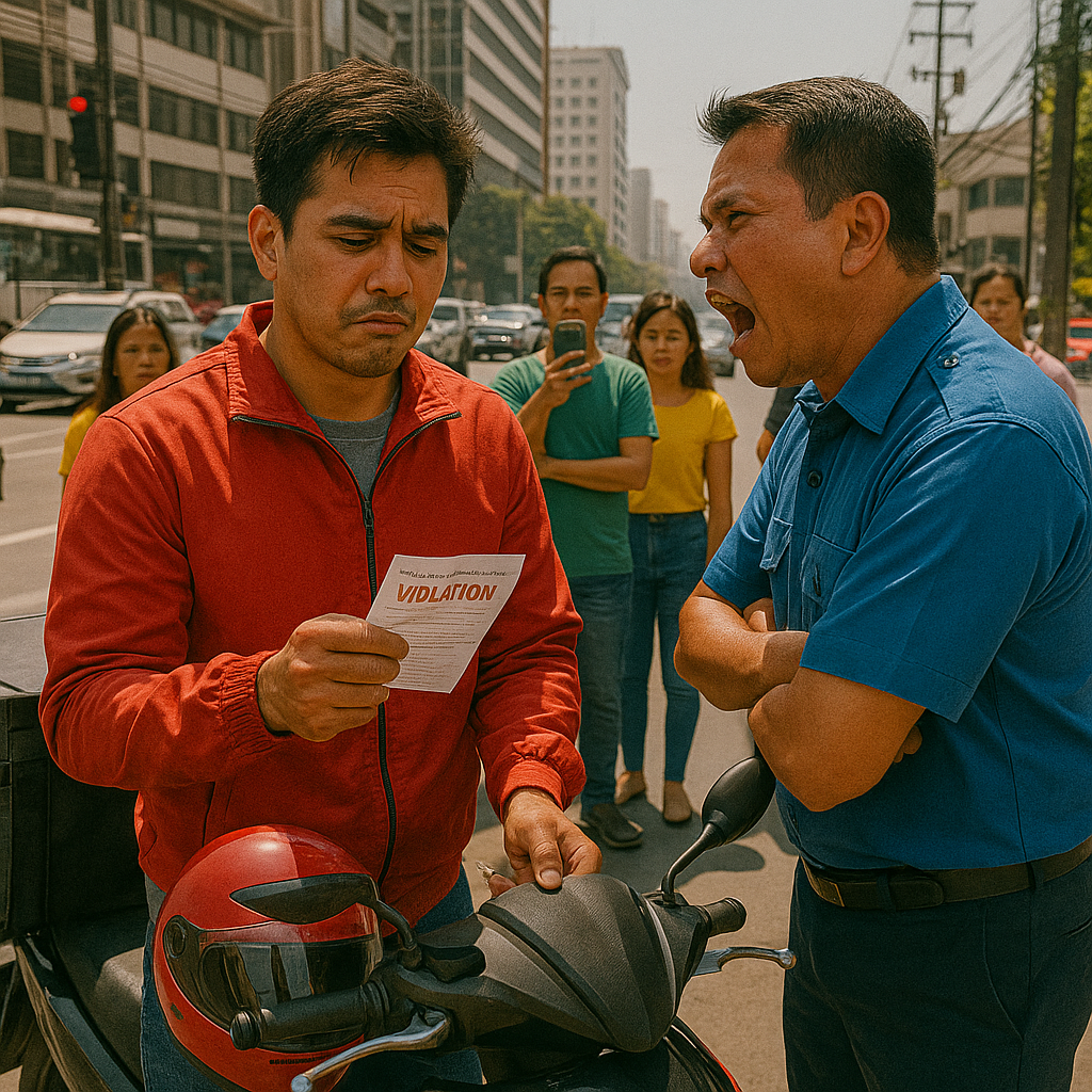 Sa tindi ng sikat ng araw sa EDSA, sa gitna ng busina, usok, at nagmamadaling tao, isang lalaking naka-pulang jacket ang nakatayo sa tabi ng kanyang motor habang pinapahiya ng isang traffic enforcer na halos lumobo na sa galit ang leeg.
