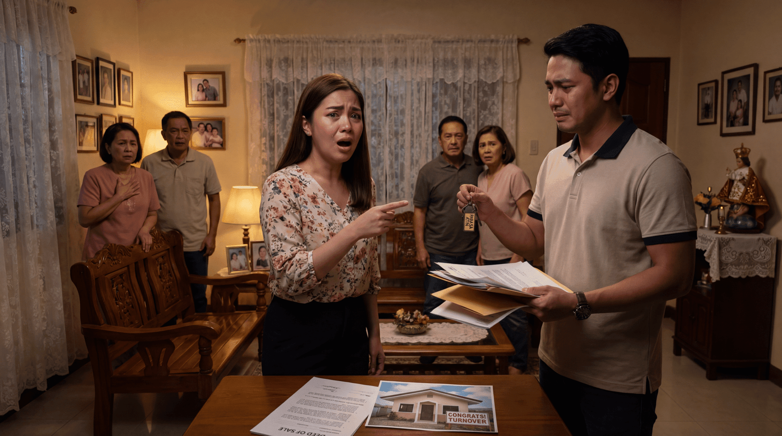 Hindi agad sumagot si Ethan. Tumingin muna siya sa mga magulang. Parang humihingi siya ng lakas. Pagkatapos, ibinaba niya sa mesa ang folder na hawak niya—mga papeles na nakatupi, mga resibo, at isang printed photo ng isang bahay na may malaking nakalagay: CONGRATS! TURNOVER.