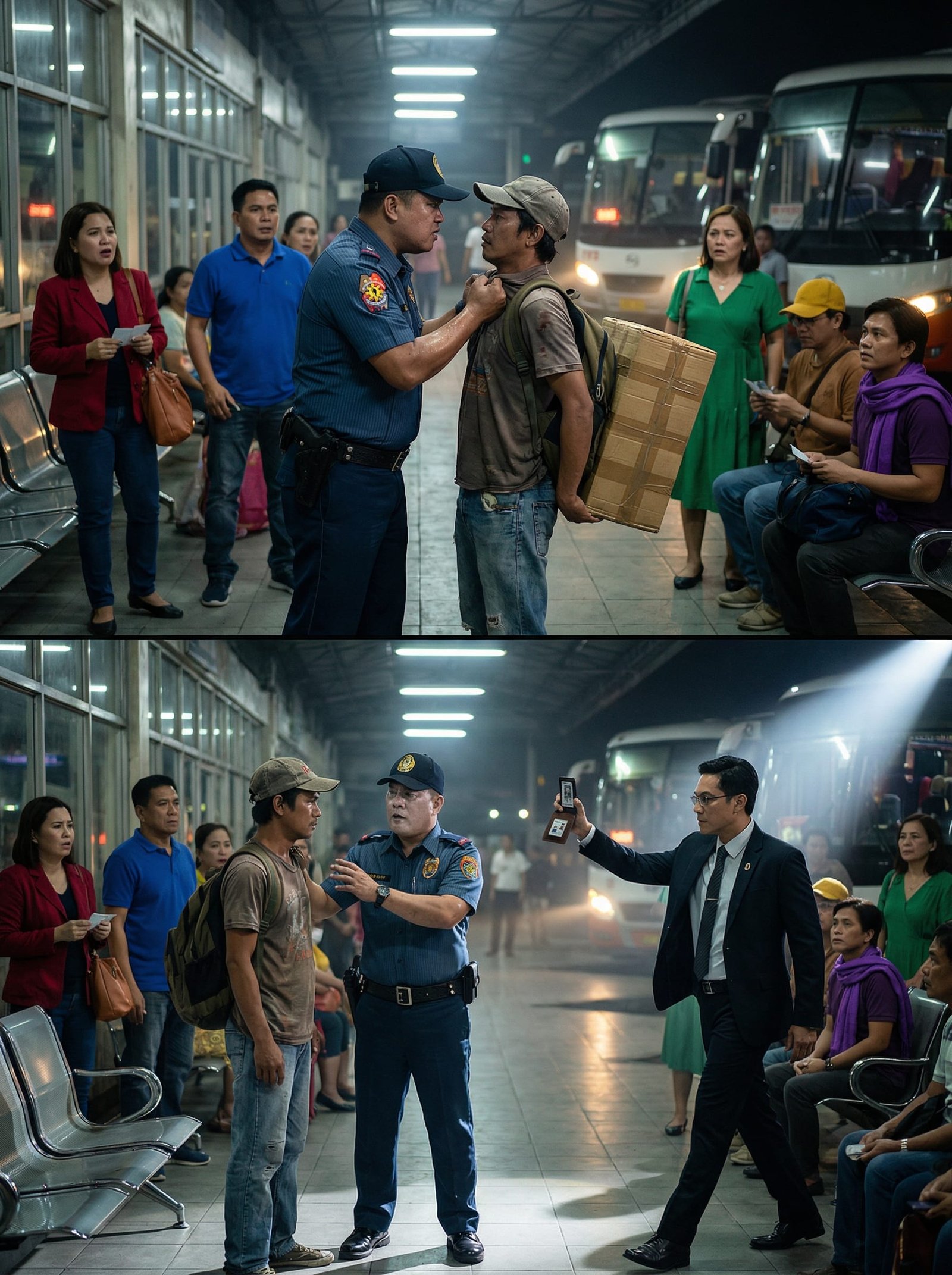 Natatakot pa rin si Romy habang nakadikit ang likod sa poste. Nanginginig ang tuhod niya, parang anumang segundo ay babagsak siya. Sa harap niya, si PO3 Alvarado—kanina’y panginoon ng terminal—ngayon ay biglang nawala ang sigaw at palaban na tindig.