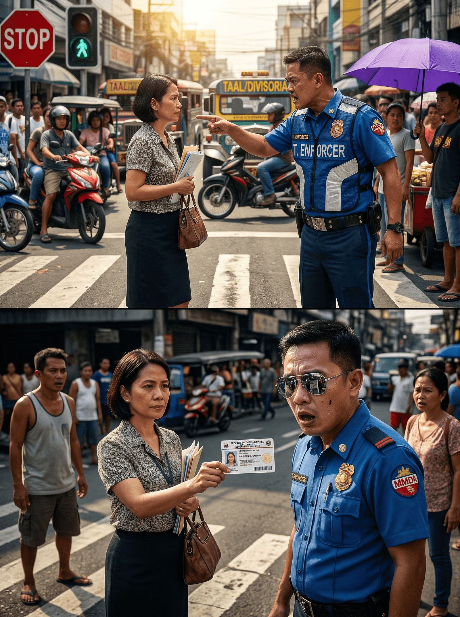 Nakatigil si Ma’am Lou sa gitna ng pedestrian, parang inipit ng dalawang mundo—ang mundo ng batas na dapat gumagana, at ang mundo ng yabang na pumapatay sa dignidad. Sa paligid, may mga cellphone nang nakatutok. May naglalive pa, naghahanap ng content. Sa bawat segundo, mas lumiliit ang pakiramdam niya.