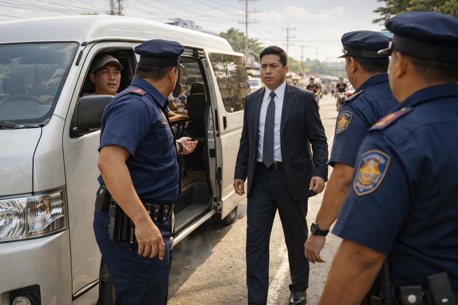 Tumingin ang lalaki sa van, tapos sa mga pasahero, tapos sa pulis na nakaharang. “Bakit kayo pinapahinto?”