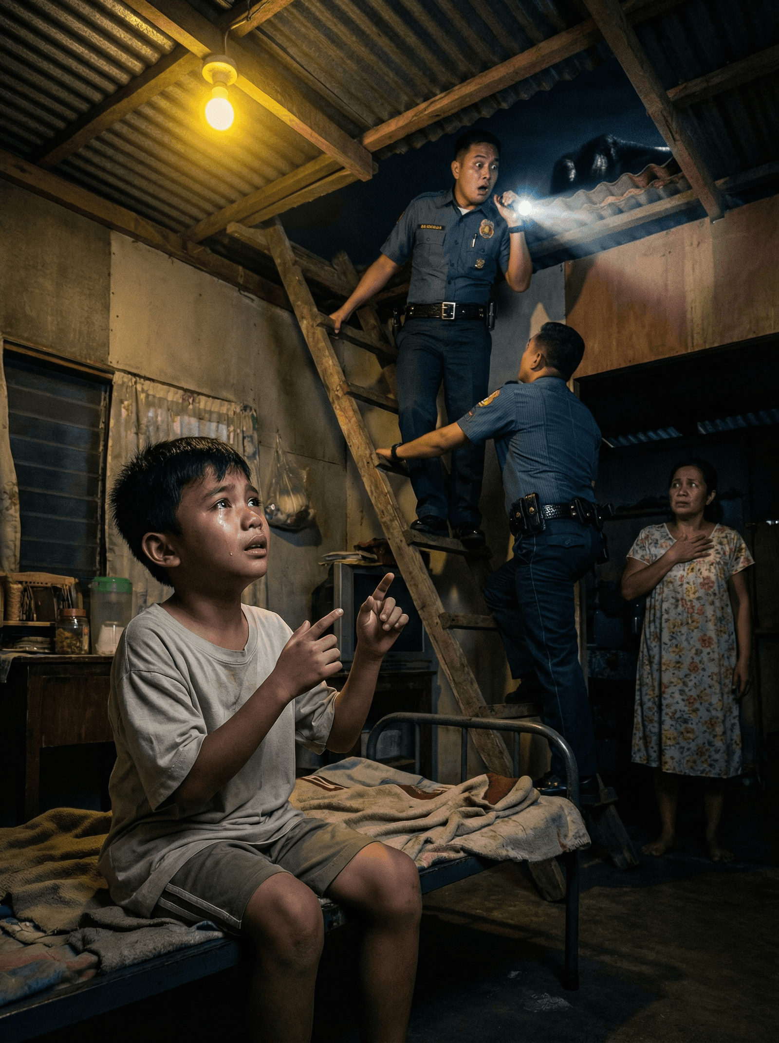 Nilunok ni Patrolman Javier ang kaba. Sa tagal niya sa serbisyo, marami na siyang narinig na reklamo tungkol sa ingay sa bubong—pusa, magnanakaw, lasing, maging mga kuwento ng multo. Ngunit may kakaiba sa gabing iyon. Hindi dahil sa tunog, kundi sa paraan ng pagsasalita ng bata. Hindi ito tunog ng batang nag-iimbento. Tunog ito ng batang ilang gabing hindi na natutulog.