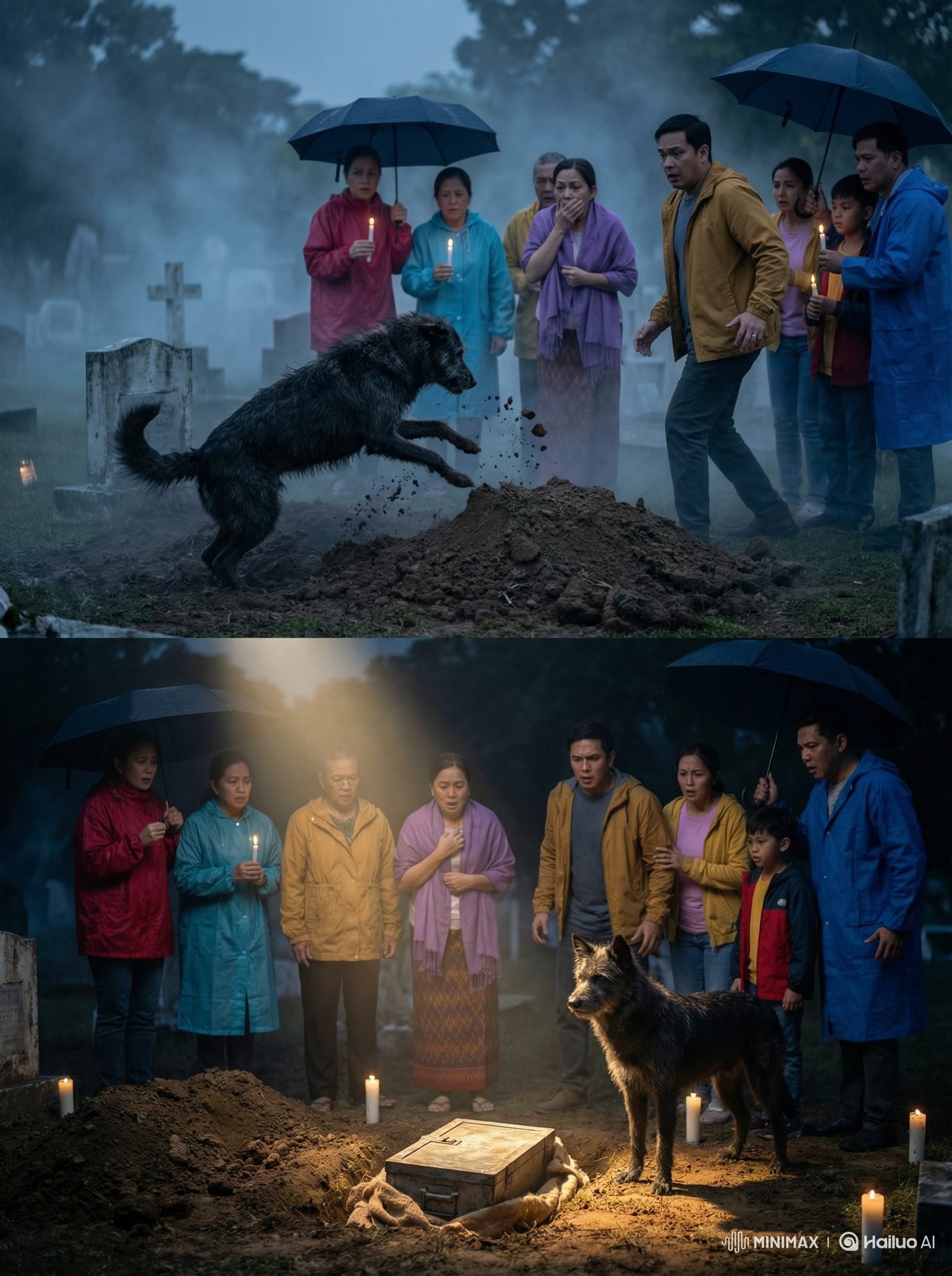 Pero si Lobo, nakapulupot sa gilid ng hukay, nakatutok ang mata sa lupa na parang may hinihintay. Hindi siya tumahol. Hindi siya nagwala. Ang ginagawa niya lang—humihinga nang mabigat, saka umiikot-ikot sa bunton ng lupa.