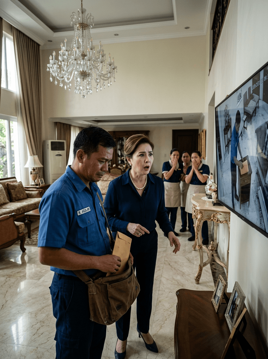 Ginawa ng tech ang zoom. Lumitaw ang frame: si Lorna, nagmamadali. Ang pouch, bahagyang bukas. Ang sobre, nakausli. At sa likod, may dumaan na tao—nakasuot ng itim na apron. Sa pag-zoom, nakita ang mukha: Mila, ang matagal nang senior kasambahay—siya ang pinagkakatiwalaan ni Madam sa mga gamit at schedule.