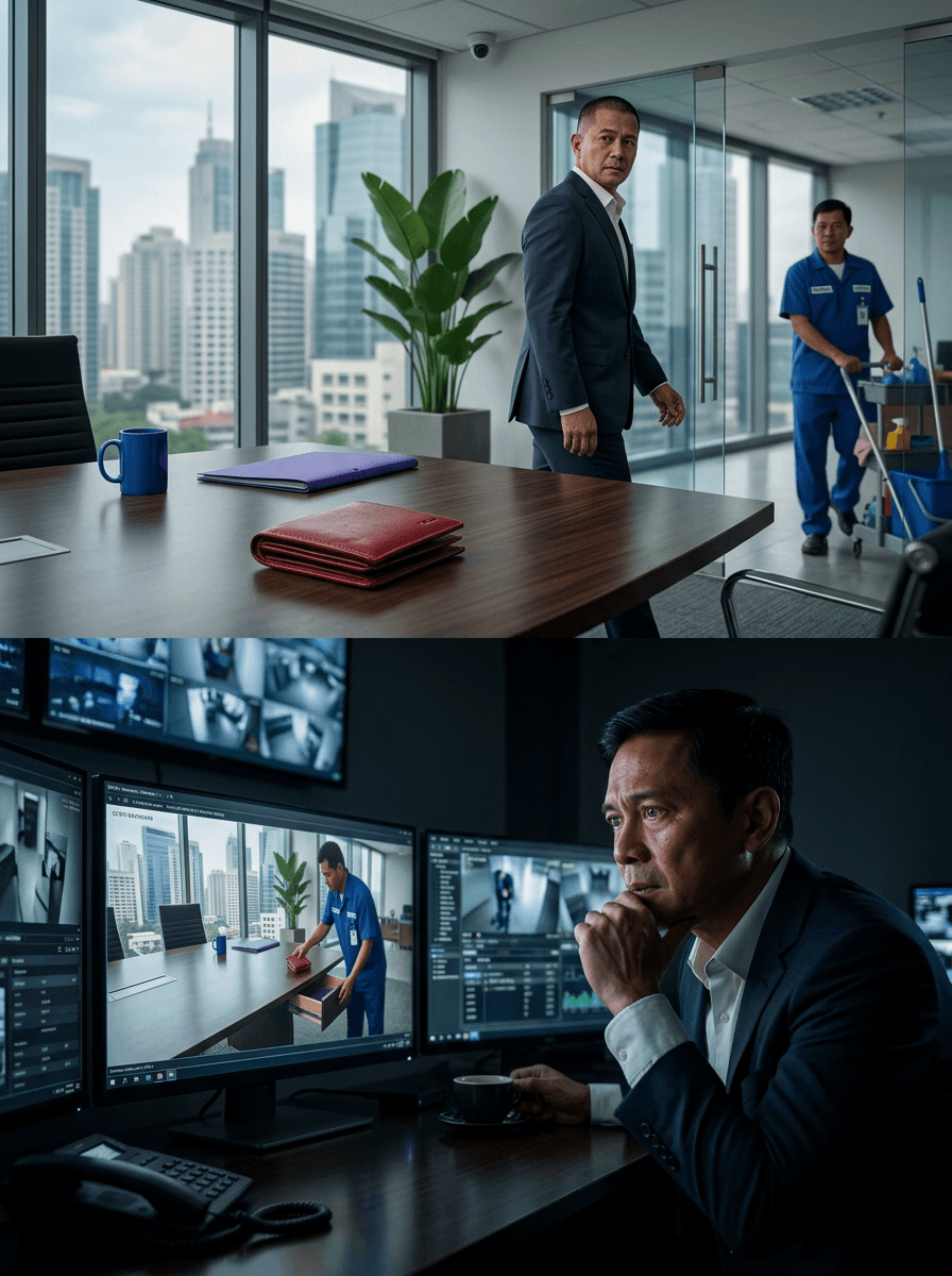 Pagkatapos ng meeting, sinadya niyang iwan ang pitaka sa mesa. Hindi ito basta pitaka—may laman itong ilang libo, cards, at isang lumang litrato na pinakaiingatan niya. Nilabas niya pa ang phone at sinuri ang CCTV camera sa sulok, siguradong nakatutok ito sa mesa.