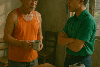 Kinaumagahan, maaga akong nagising. Tinuruan ako ni Nanay paano hugasan ang bigas nang hindi nauubos sa lababo. Paikot—hindi brusko—tapos banlaw, banlaw, salok. Nilagyan ko ng luya at kaunting asin. Habang kumukulo, ikinuwento niya ang kabataan niya: paano siya nagbaon ng asin sa supot at kumukuha ng tubig sa poso para magmukhang may ulam; paano nagturo sa kaniya ang isang guro na “ang hiya ay hindi ulam—huwag mong kainin araw-araw.” Pinikit ko ang mata. Sa loob, may upuang nagsabing: dito ka na, Marco—dito ka sa tapat ng katotohanan.