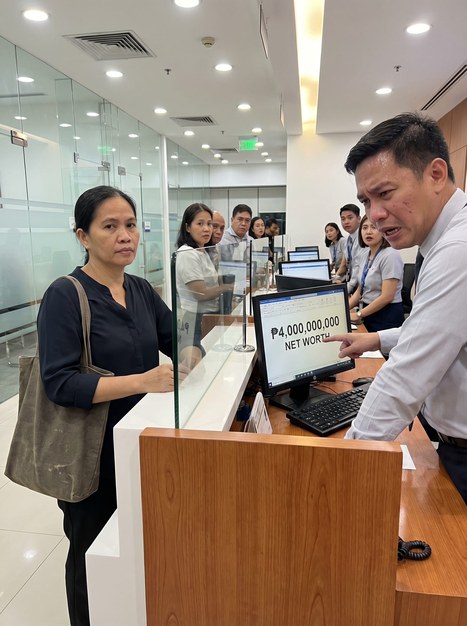 Parang tumigil ang oras sa loan section. Walang nangahas magsalita. Ang tanging maririnig ay ang mahihinang tunog ng keyboard at ang malamig na ugong ng aircon. Nakatingin ang lahat sa screen na para bang hindi sila makapaniwalang ang babaeng nasa simpleng blusa at may lumang bag ay may nakarehistrong net worth na apat na bilyong piso.