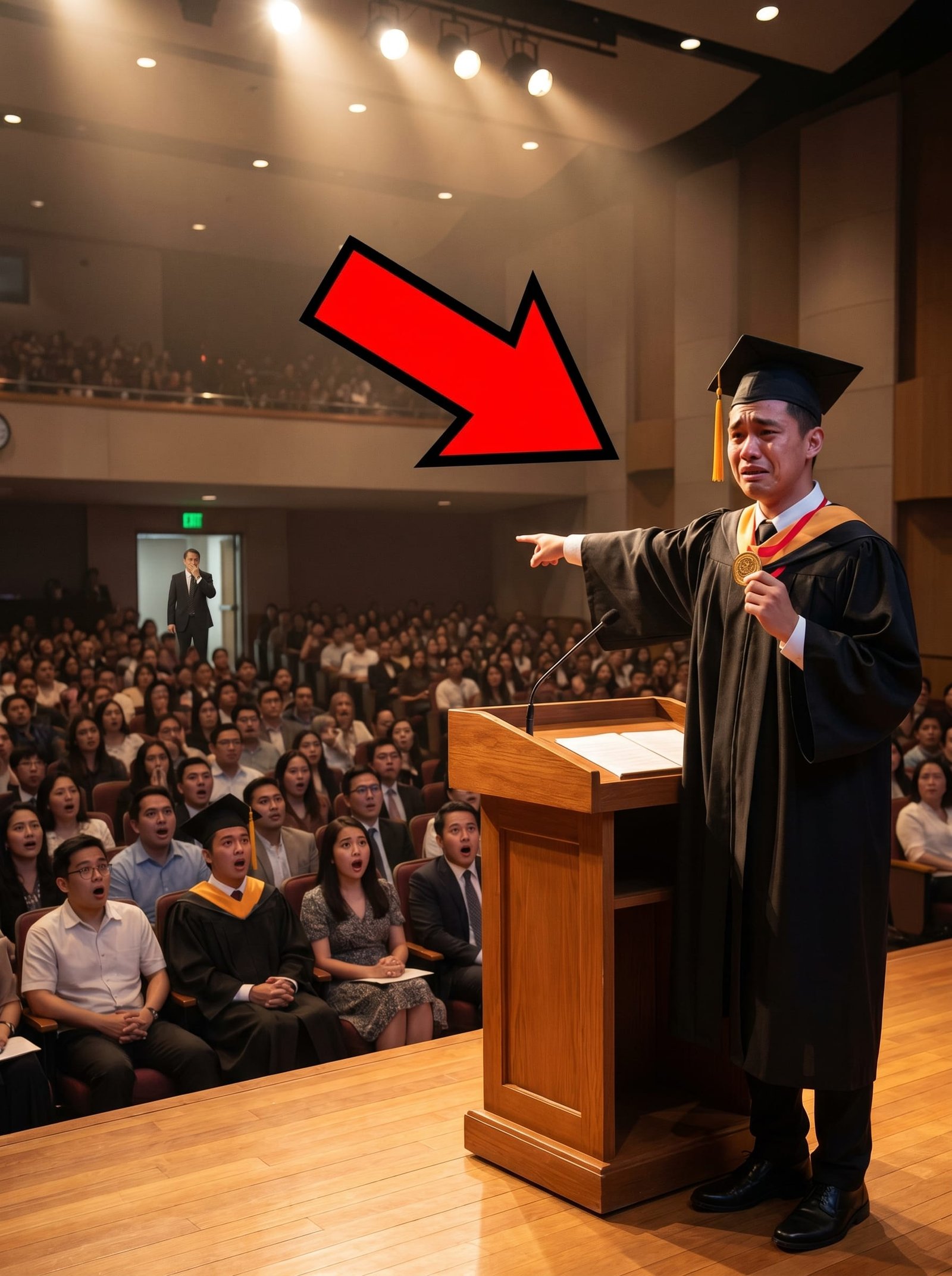 Tahimik ang buong bulwagan habang nakatayo si Adrian sa entablado, hawak ang pinakamataas na medalya na matagal niyang pinaghirapan. Nakatingin sa kanya ang principal, ang mga guro, ang kanyang pamilya, at ang daan-daang panauhin. Ngunit sa halip na isuot agad ang medalya at ngumiti para sa litrato, huminga muna siya nang malalim at inilapit ang mikropono sa kanyang labi.