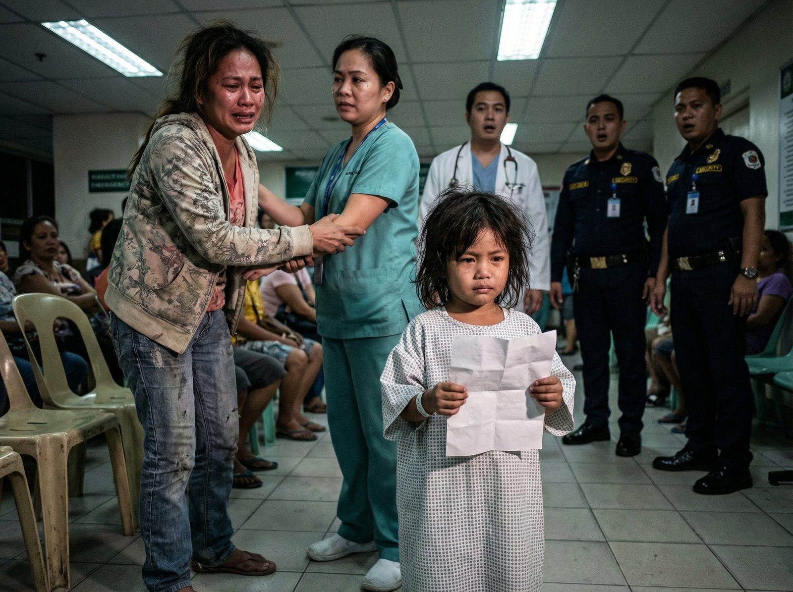 Sa isang pampublikong ospital sa Quezon City, siksikan ang waiting area—mga pasyenteng nakaupo sa plastic chair, mga umiiyak, mga nagdadasal. Sa gitna ng kaguluhan, may isang batang babae na nakagown, gusot ang buhok, at hawak ang isang lukot na papel. Tahimik siya, parang sanay nang magtiis.