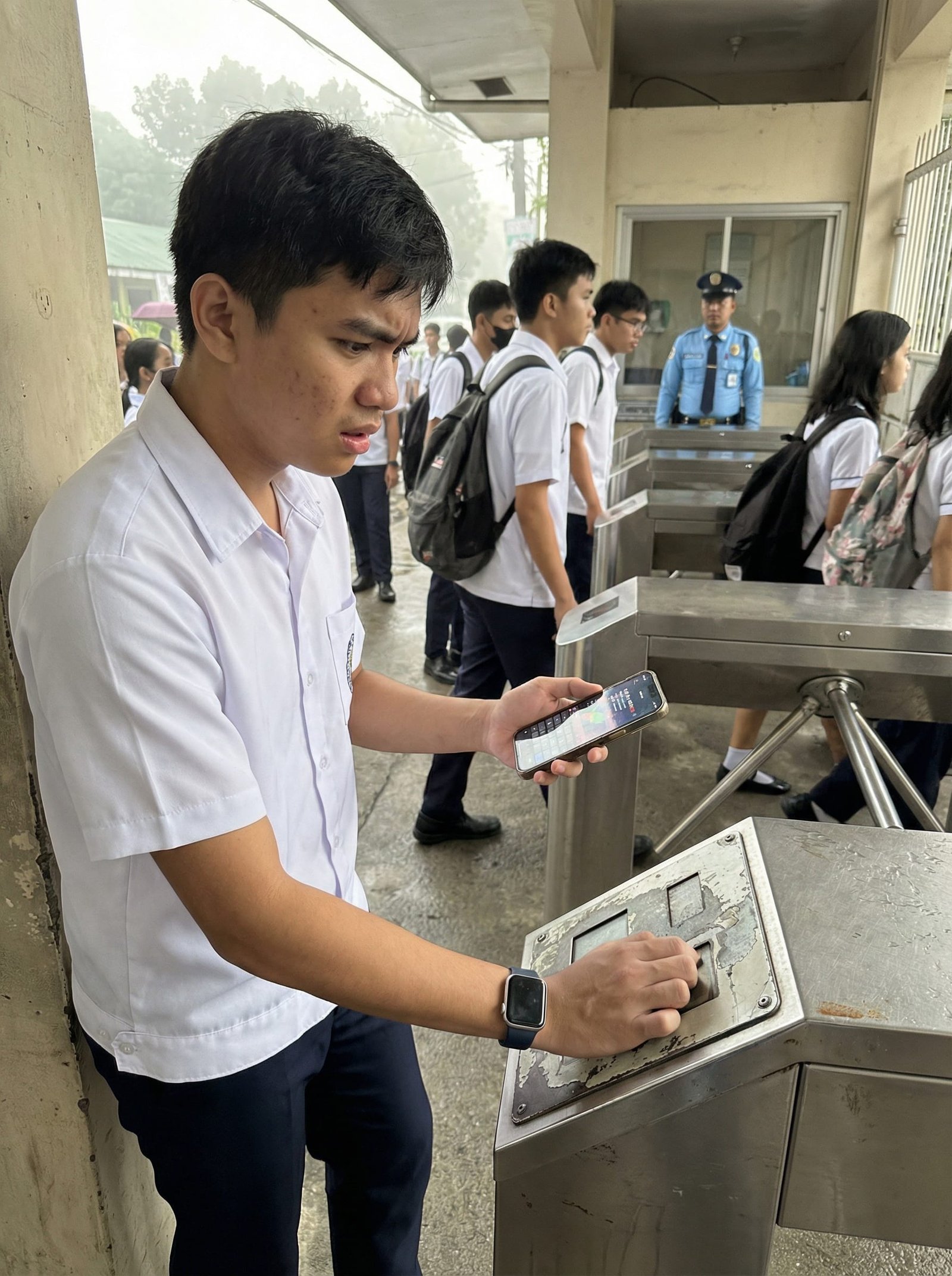 Maulan ang umaga nang pumasok si Miko sa gate ng San Gabriel National High School. Tulad ng araw-araw, mahaba ang pila ng mga estudyante sa turnstile habang isa-isang ini-scan ang kanilang ID. Ngunit nang idikit ni Miko ang ID niya sa scanner, bigla itong nag-error. Pumitik ang ilaw, umingay ang maliit na makina, at hindi bumukas ang turnstile.