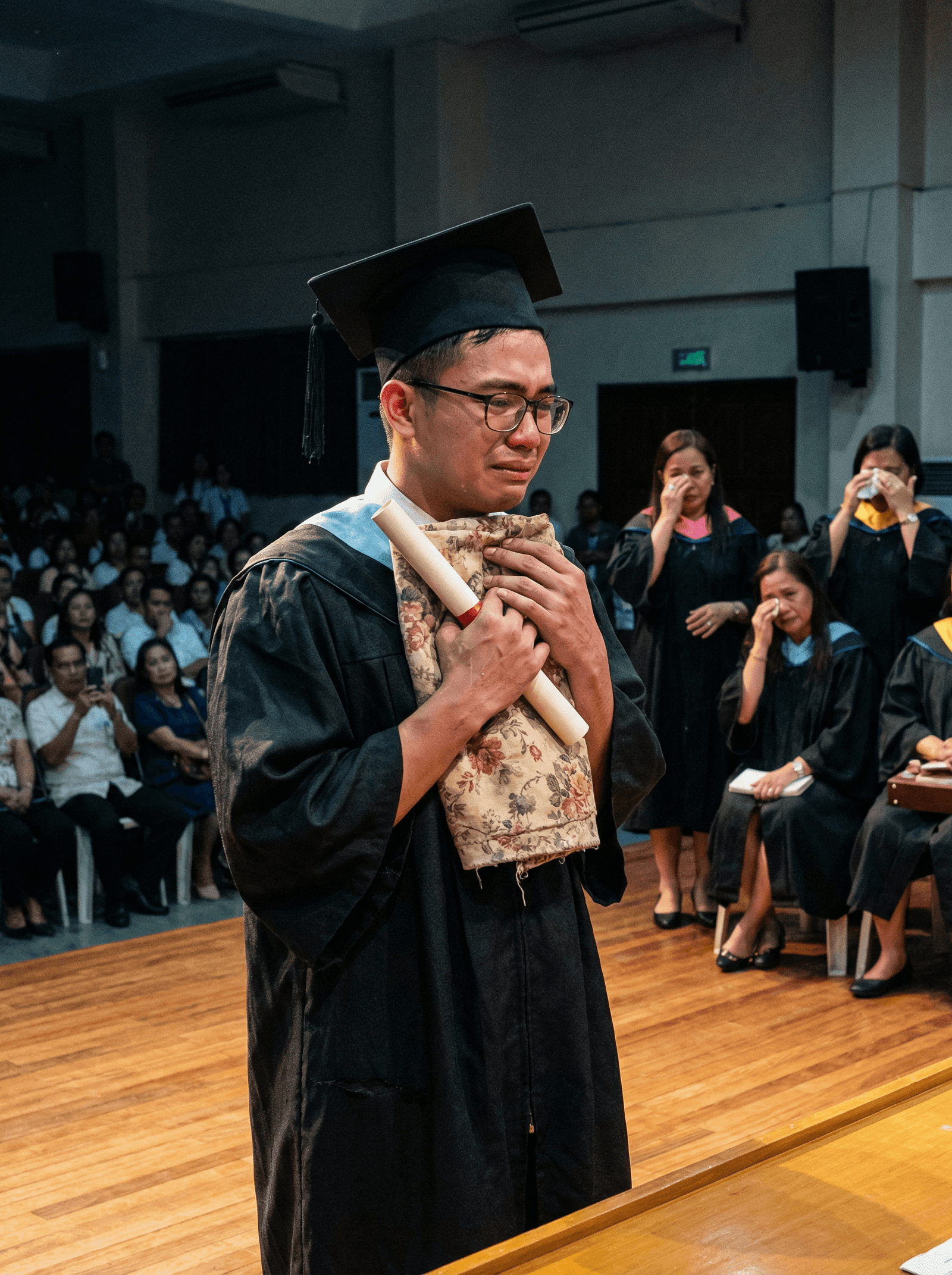 “Nay,” mahinang sabi niya sa pagitan ng hikbi, “nakagraduate na po ako.”