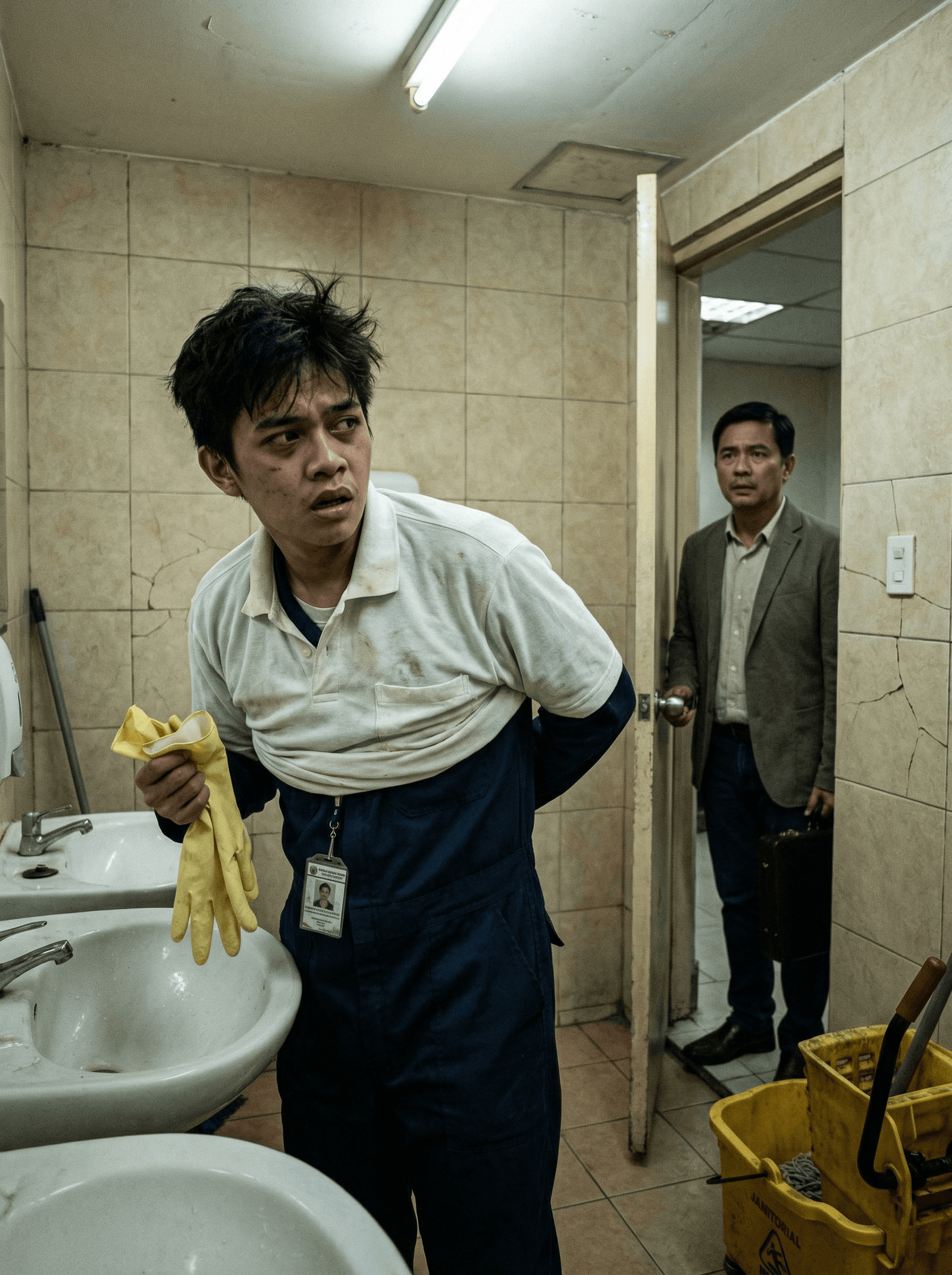 Madilim pa nang makarating siya malapit sa Jollibee sa kanto, dahil may kutob siyang doon ito dumadaan. At hindi siya nagkamali. Bandang alas-singko y medya, lumabas si Jomar mula sa comfort room ng fast food chain, suot ang malinis na uniporme pang-eskwela, pero may bakas pa rin ng pagod at bahagyang amoy ng disinfectant. Nakasuksok sa bag ang isang gusot na damit na halatang uniporme sa trabaho.