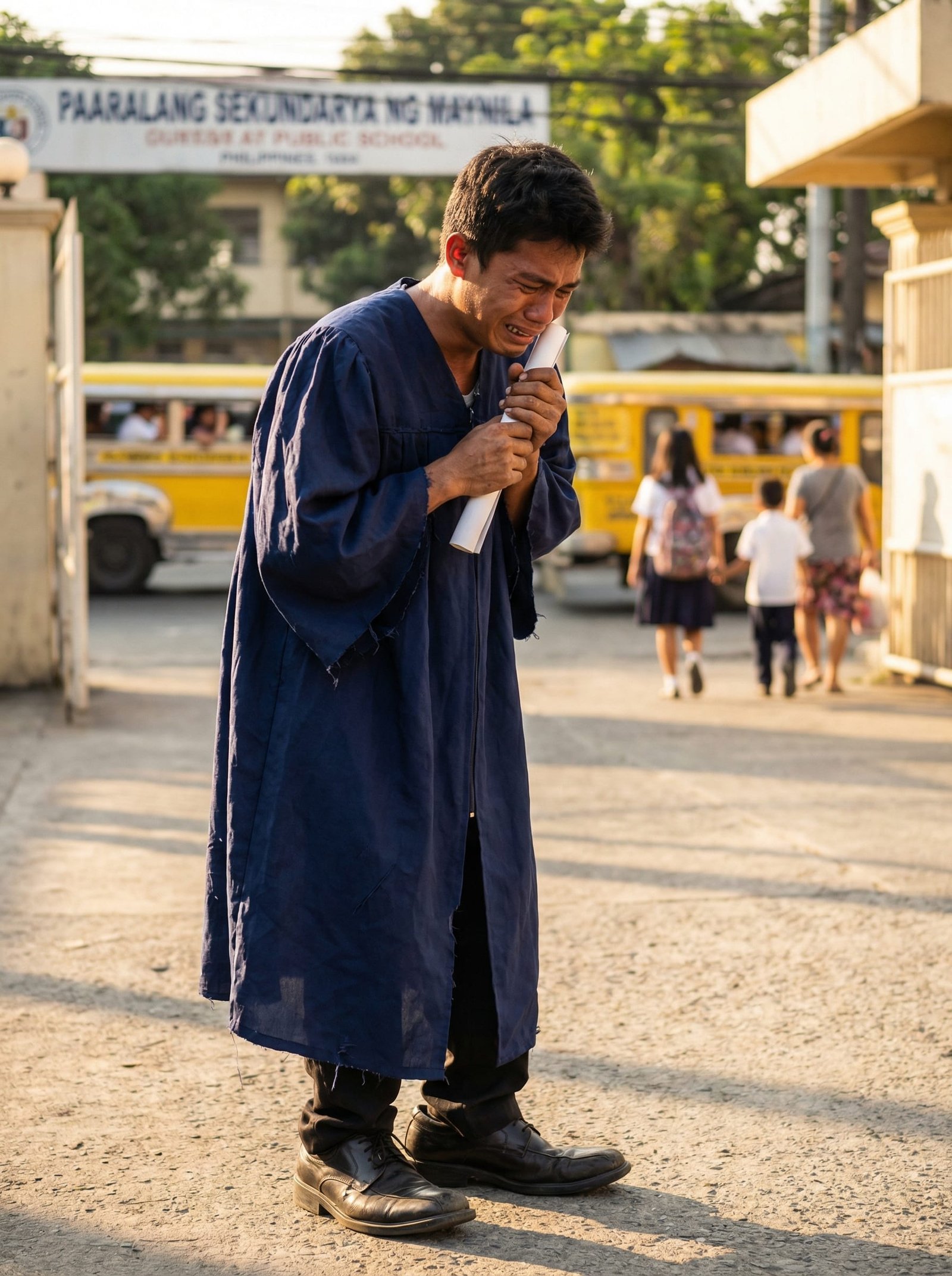 Humagulhol siya nang tahimik, nakayuko, hawak ang diploma na parang iyon lang ang tanging patunay na totoo ang lahat ng tiniis niya.