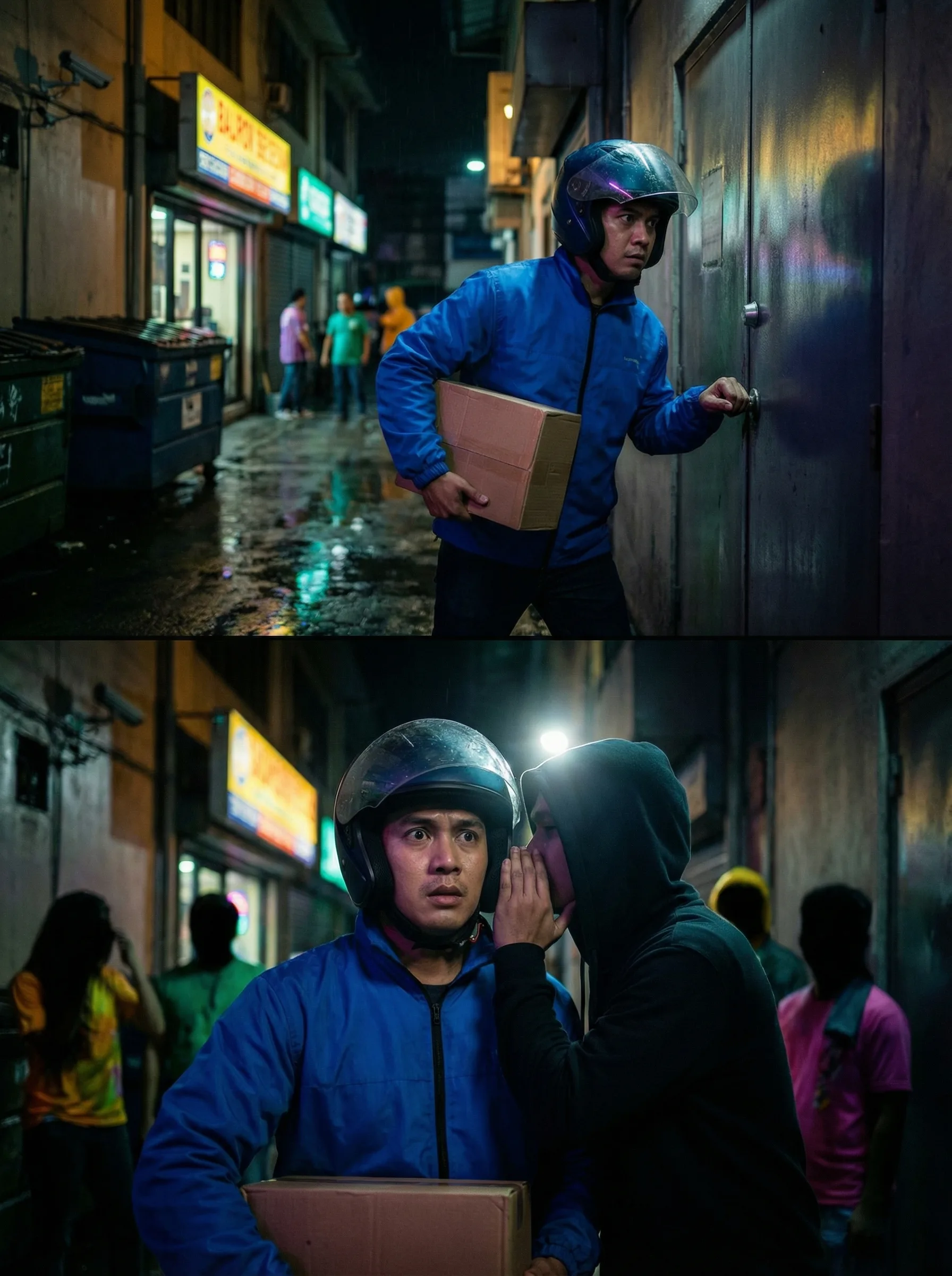 Gabi na, at basa ang eskinita sa ulan. Sa ilalim ng dilaw na ilaw ng mga karatula, may lalaking naka-jacket na asul at helmet—bitbit ang isang karton, kumikilos na parang karaniwang delivery rider. Pero ang totoo, siya si Adrian Villanueva, may-ari ng isang mabilis lumaking logistics at food supply company: AV Prime.