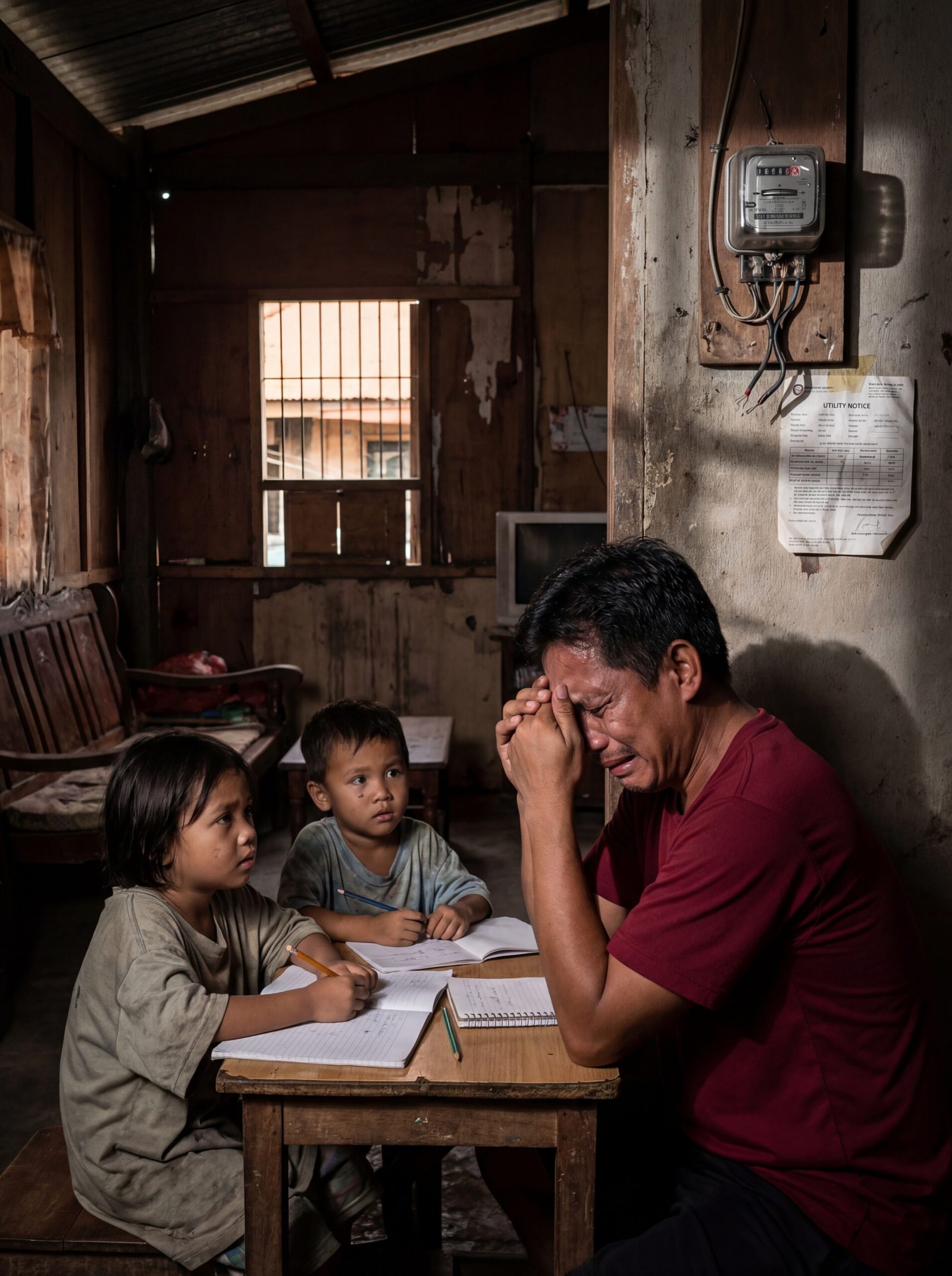 Pero isang araw, may nag-forward sa kanya na litrato—galing sa kapitbahay na may malasakit. Sa larawan: ang mga anak niya, nakaupo sa maliit na mesa, nakayuko sa kuwaderno. Sa dingding, may utility notice at metro ng kuryente. Sa caption: “Kuya Marlon, pinutulan na po sila. Hindi na rin makapasok sa school.”