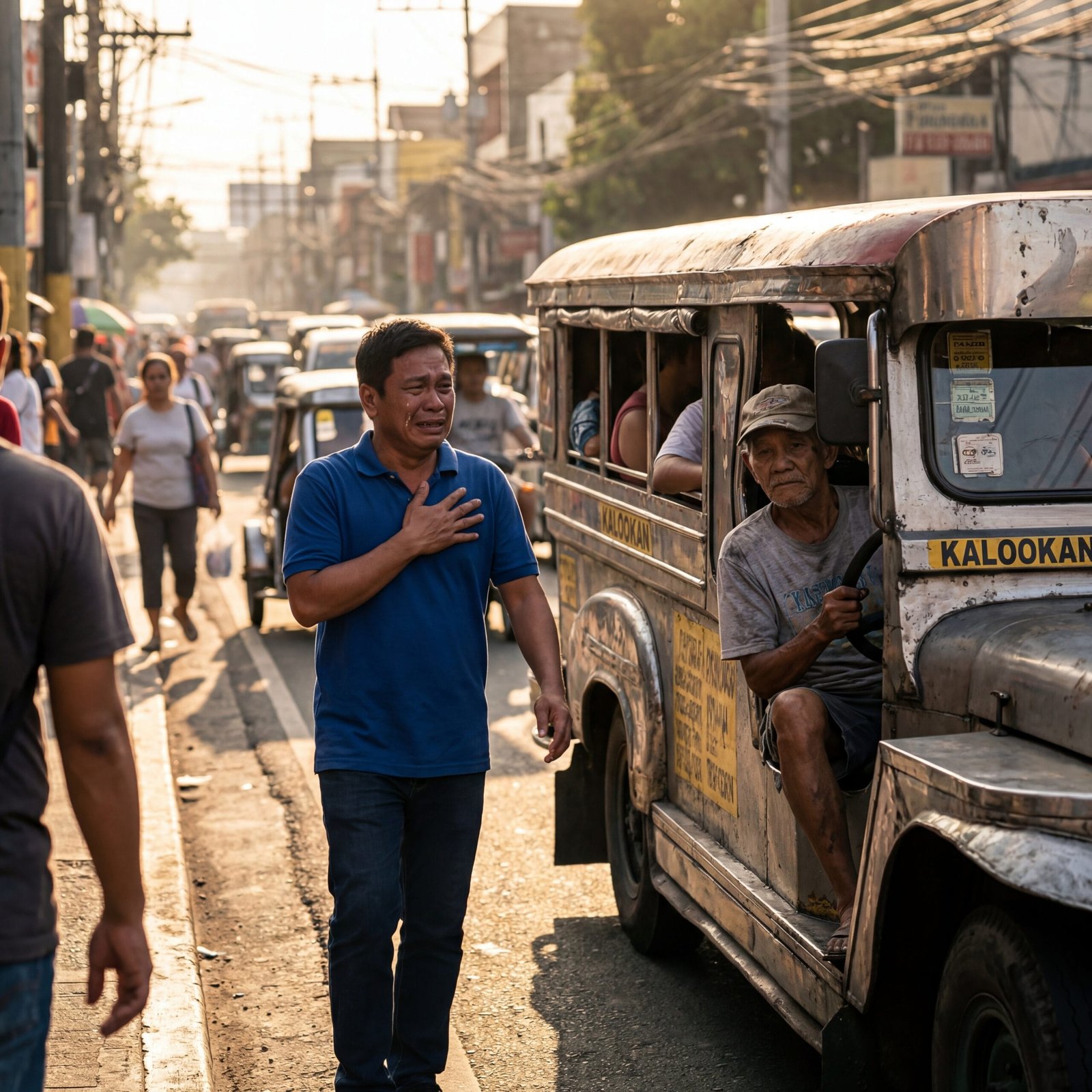 Lumapit siya, nanginginig ang tuhod. Sa loob ng jeep, may mga pasaherong nakasiksik. Si Tatang Ben, nakatingin lang sa kalsada, parang makina na sanay sa araw-araw na laban.