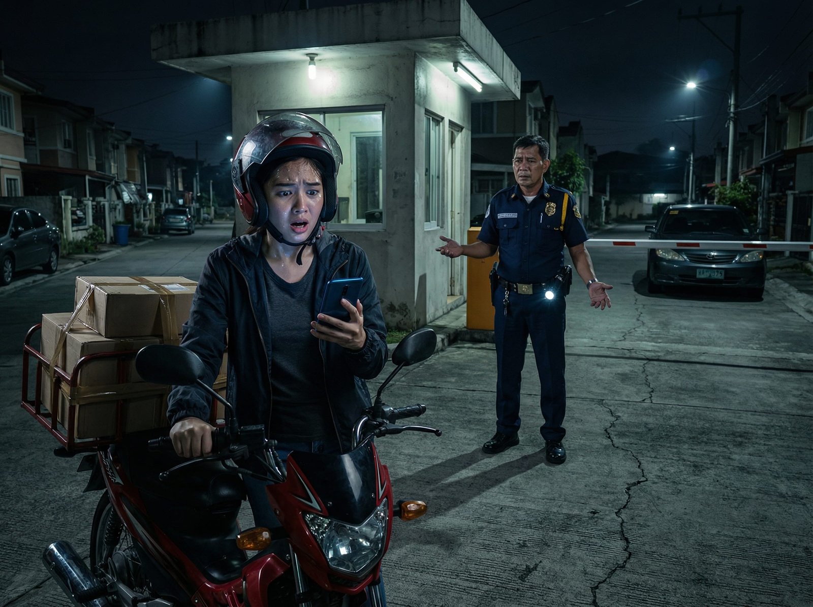 “Good evening po, Kuya. Delivery po ako. Kay Gino S., Blk 12 Lot 8.”