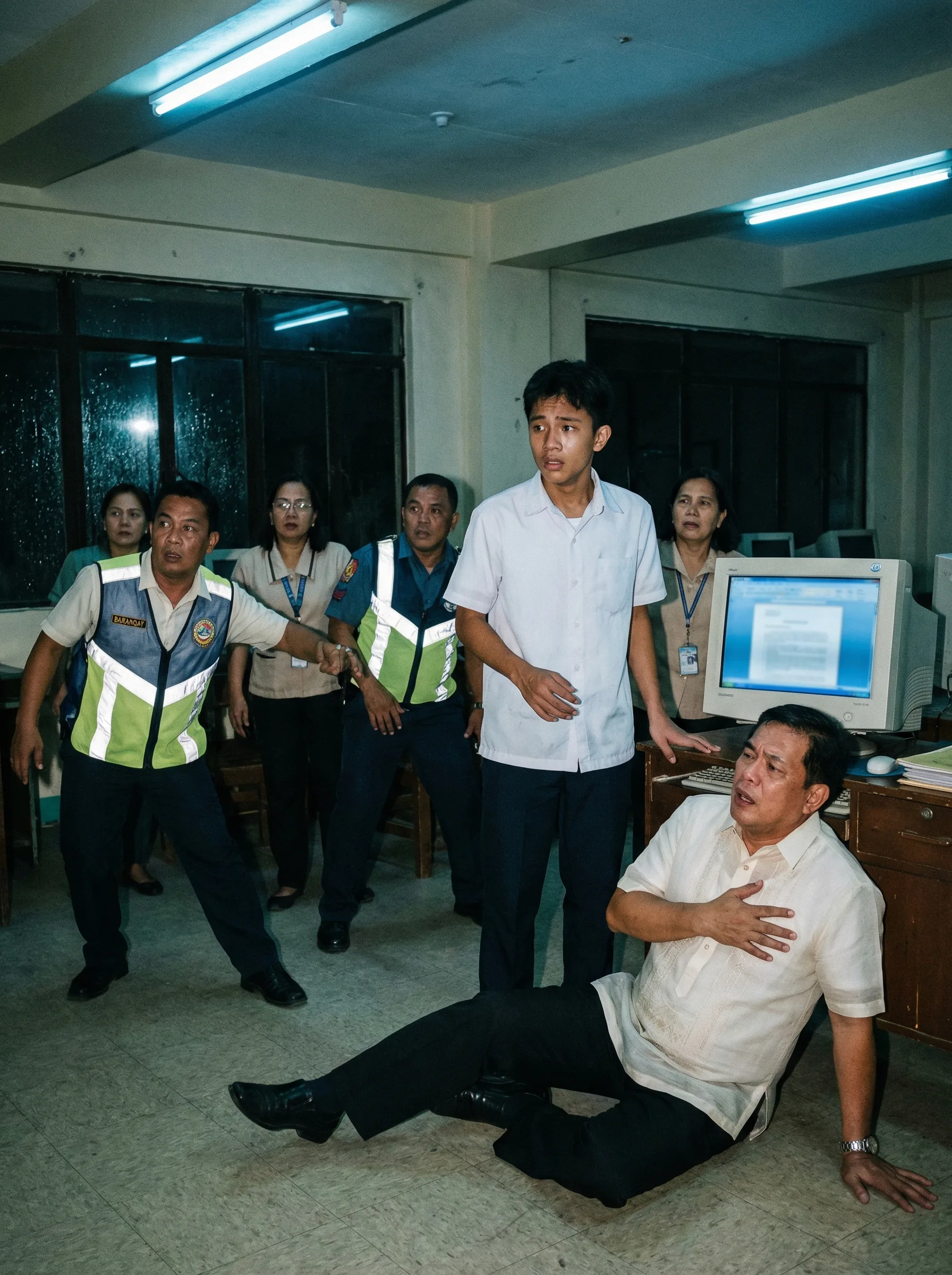 Nabigla si Marco at agad tumayo. Namumutla ang kanyang mukha, at halatang nanginginig ang mga kamay niya. Sa screen ng computer ay may bukas na folder na hindi karaniwang pinapakialaman ng estudyante. Makalipas ang ilang minuto, dumating ang principal na si Mr. Villanueva, kasama ang ilang guro at mga barangay tanod na ipinatawag dahil inakala nilang may tangkang pagnanakaw o pangha-hack.