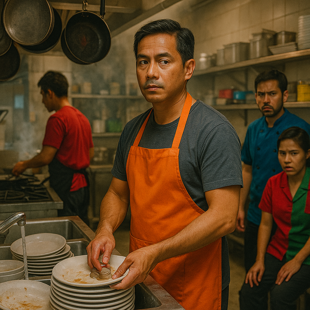 Mainit at mausok ang likod ng kusina, mabigat ang singaw ng mantika at sabay-sabay na kalansing ng kawali at pinggan. Sa tabi ng gripo, nakatayo ang lalaking naka-abong t-shirt at kahel na apron, kamay na sanay sa kutsilyo pero ngayon ay humahagod ng espongha sa maduduming plato. Siya si Mauro Villareal—sikat na chef, telebisyong kilala, may-ari ng apat na restoran sa siyudad—pero ngayong gabing ito, hindi siya “Chef Mauro.” Siya si “Mang Pilo,” contractual na dishwasher na pumasok sa branch na pinakamaingay ang reklamo sa online review: malamig ang pagkain, marurumi ang kubyertos, at bastos ang staff.
