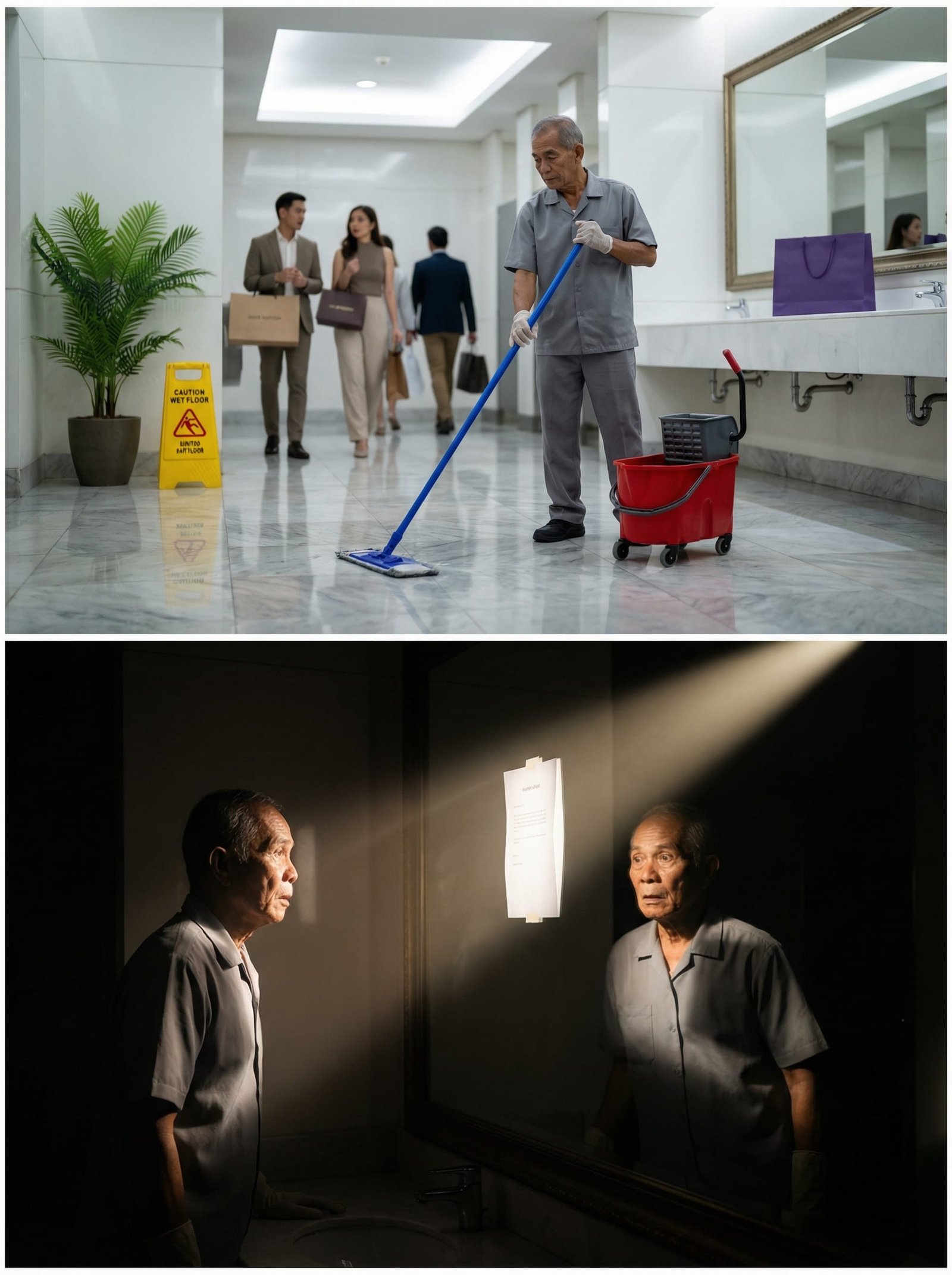 Kumirot ang dibdib ni Don Elias, pero hindi siya tumigil. Pinunasan niya ang sahig, inayos ang basurahan, at sinunod ang bawat utos na para bang ito ang una niyang trabaho sa buhay. Hanggang sa mapunta siya sa pinakaabala at pinaka-pinapabayaang lugar—ang banyo sa may food court.