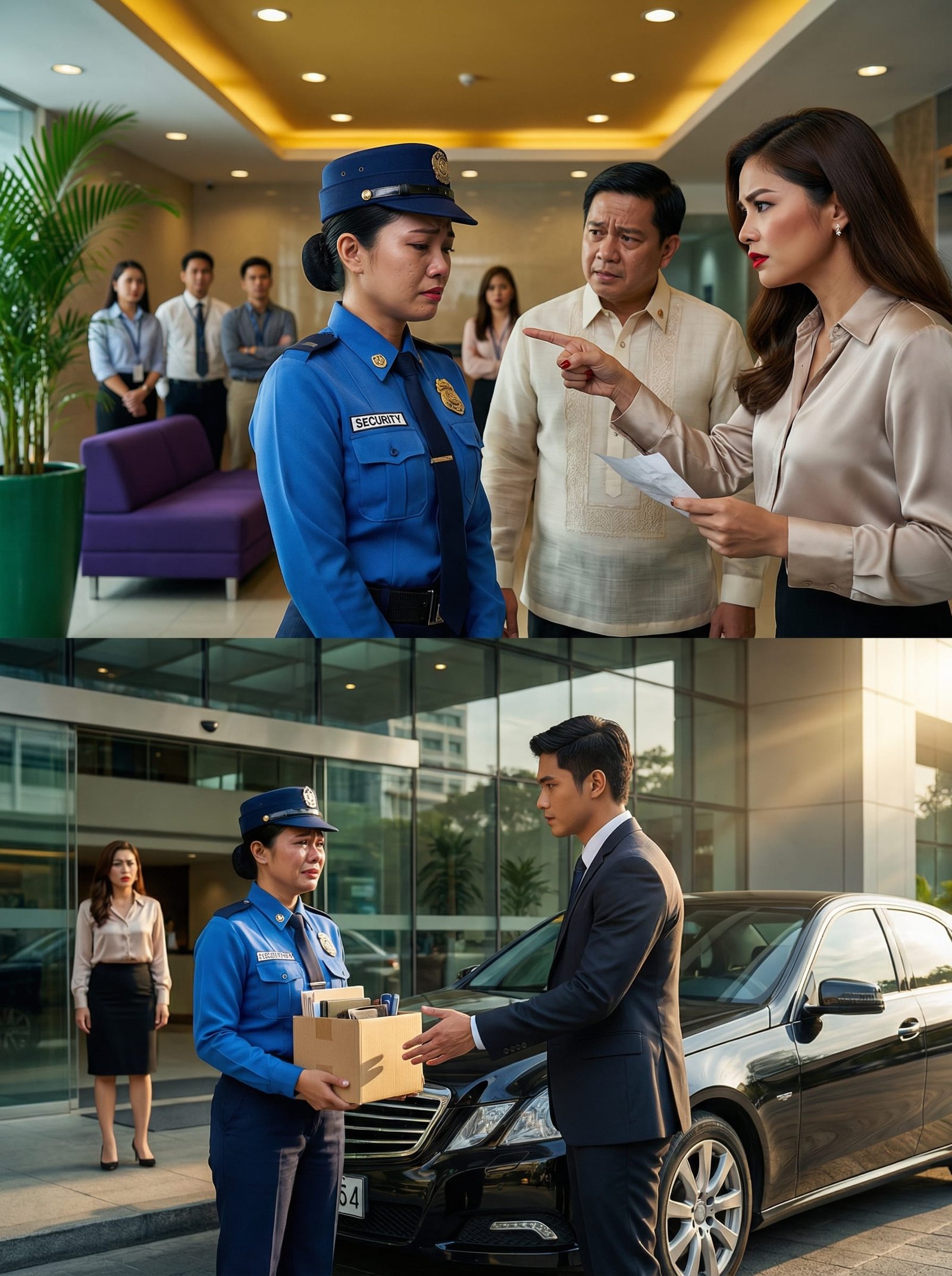 Pero ngayong umaga, may kakaibang tensyon sa lobby. Dumating si Veronica, isang eleganteng babae na kilalang “VIP client” ng building—palaging may kasamang alalay at may ngiting matalim. Sa kamay niya, may papel. Sa likod niya, sumunod ang building manager at ilang staff na tila ayaw tumingin kay Mila.