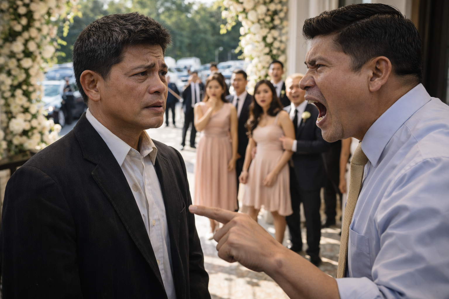 Bago pa siya makapasok, dumating si TITO GABBY, kapatid ng groom, naka-suit na kumikinang sa ilaw. Nang makita niya si Andres, nanlaki ang mata niya—hindi sa gulat, kundi sa pagkasuklam.