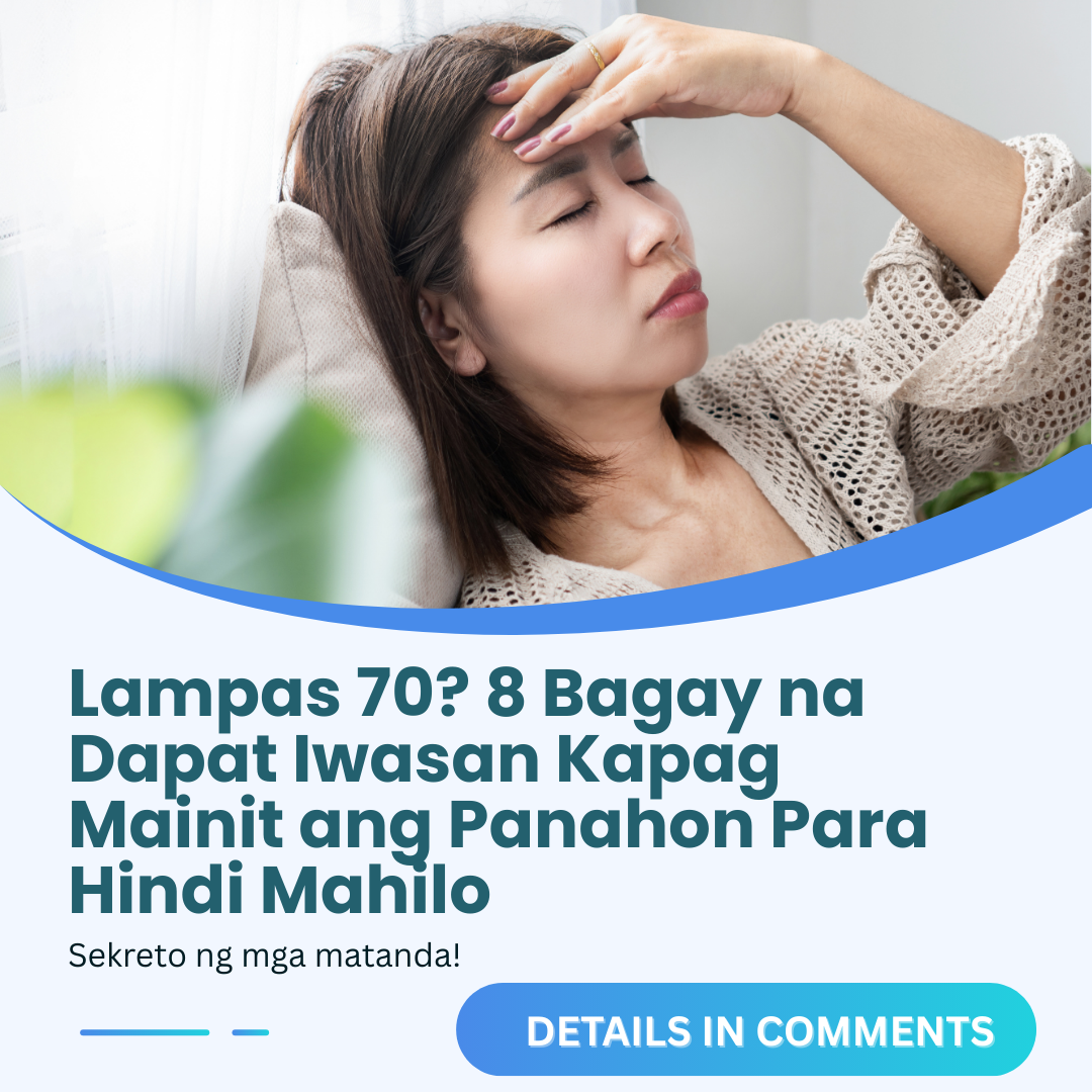Kapag lampas 70 na, mas mabilis mapagod ang katawan at mas sensitibo sa init. Kaya kapag tag-init o kahit “maalinsangan” lang, mas tumataas ang tsansang mahilo, manghina, at mapasama ang pakiramdam—lalo na kung may altapresyon, diabetes, sakit sa puso, o problema sa bato.