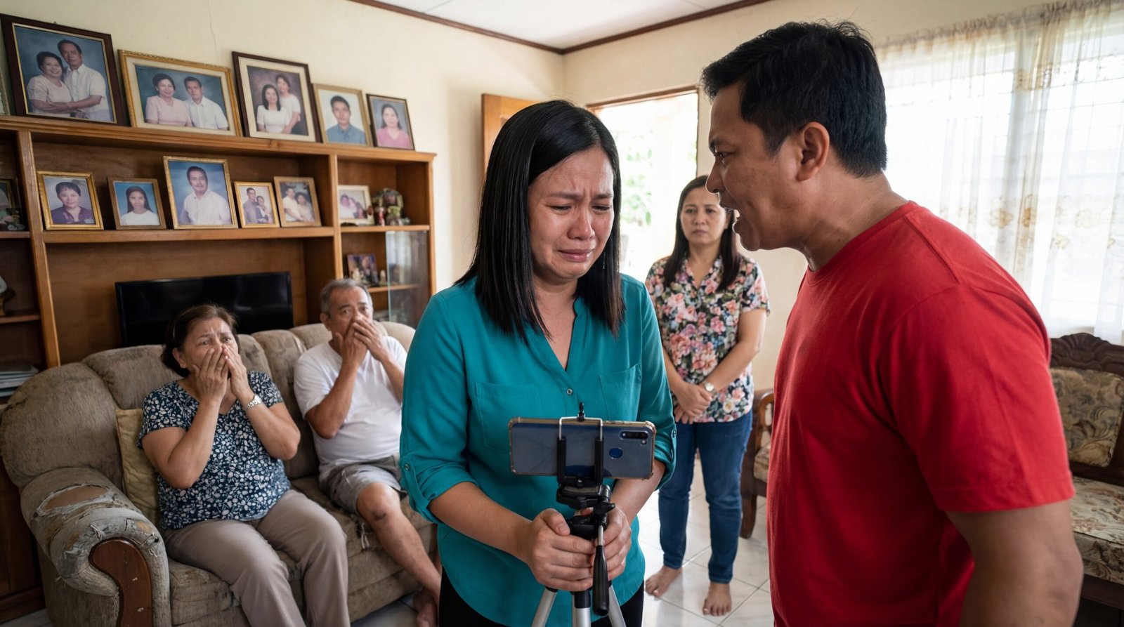 Kaya inayos niya ang tripod, sinet ang cellphone, at binuksan ang Facebook. Nakapila na rin ang ilang kamag-anak sa gilid—si Tita Liza, si Pinsan Noy, at kapitbahay na si Ate Beth na laging updated sa balita.