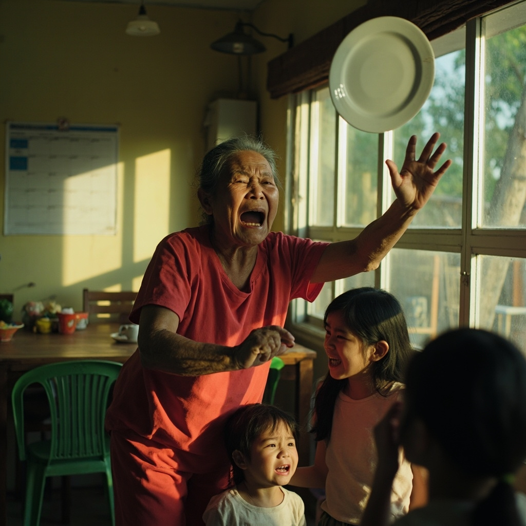 Napaatras si Pilar, napasigaw ang mga apo. Buti na lang, hindi siya tinamaan; sa halip, bumasag ang plato sa pader sa likod niya. Pero ramdam niya ang bigat ng bawat pirasong lumipad—para bang bawat lamat ng plato, lamat din sa puso niya.