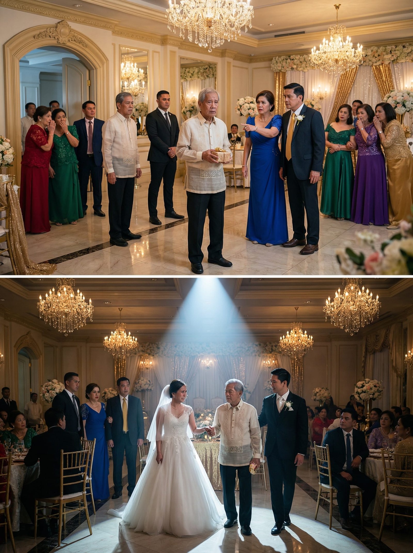 Humakbang si Gian papunta sa gitna ng ballroom, hawak ang kamay ni Lolo Pio. Hindi na niya pinayagang magtago sa likod. Dinala niya ang lolo sa ilalim ng pinakamaliwanag na chandelier—kung saan lahat makakakita.