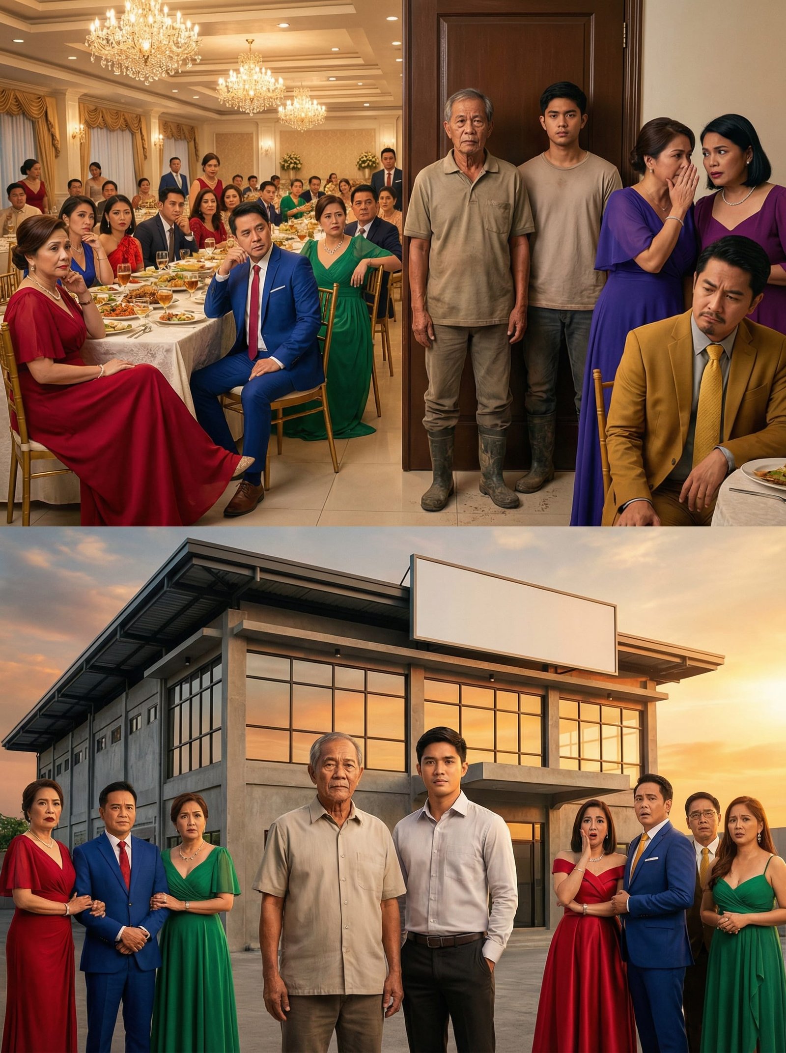 Sa loob ng napakagarbong bulwagan, kumikislap ang mga chandelier at sumasayaw ang liwanag sa mga baso ng alak. Birthday ng matriarch ng pamilya—si Doña Celia—kaya halos kumpleto ang mga kamag-anak na mayayaman: mga naka-gown, naka-suit, may mamahaling relo, at may mga tawang parang hindi nauubos.