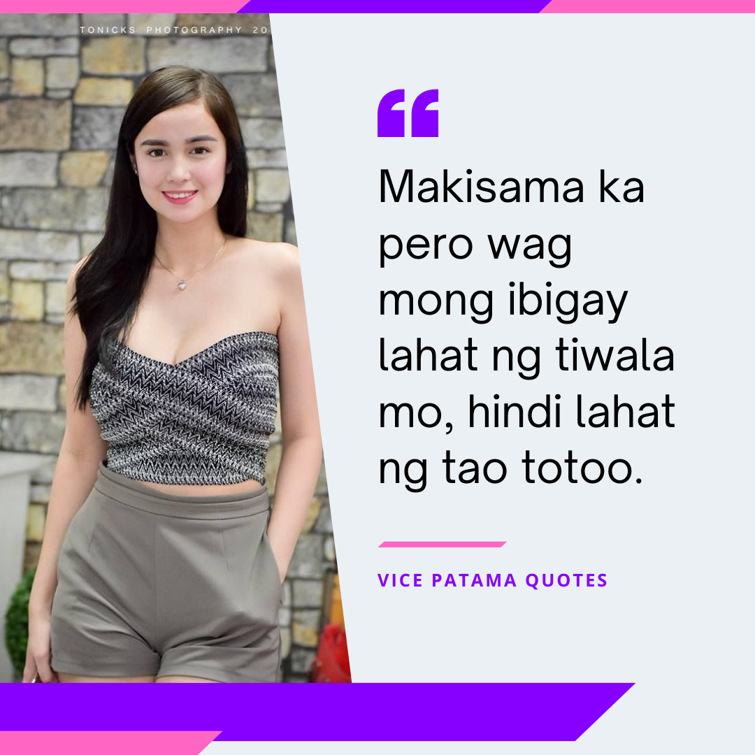 “Makisama ka pero wag mong ibigay lahat ng tiwala mo, hindi lahat ng tao totoo.”