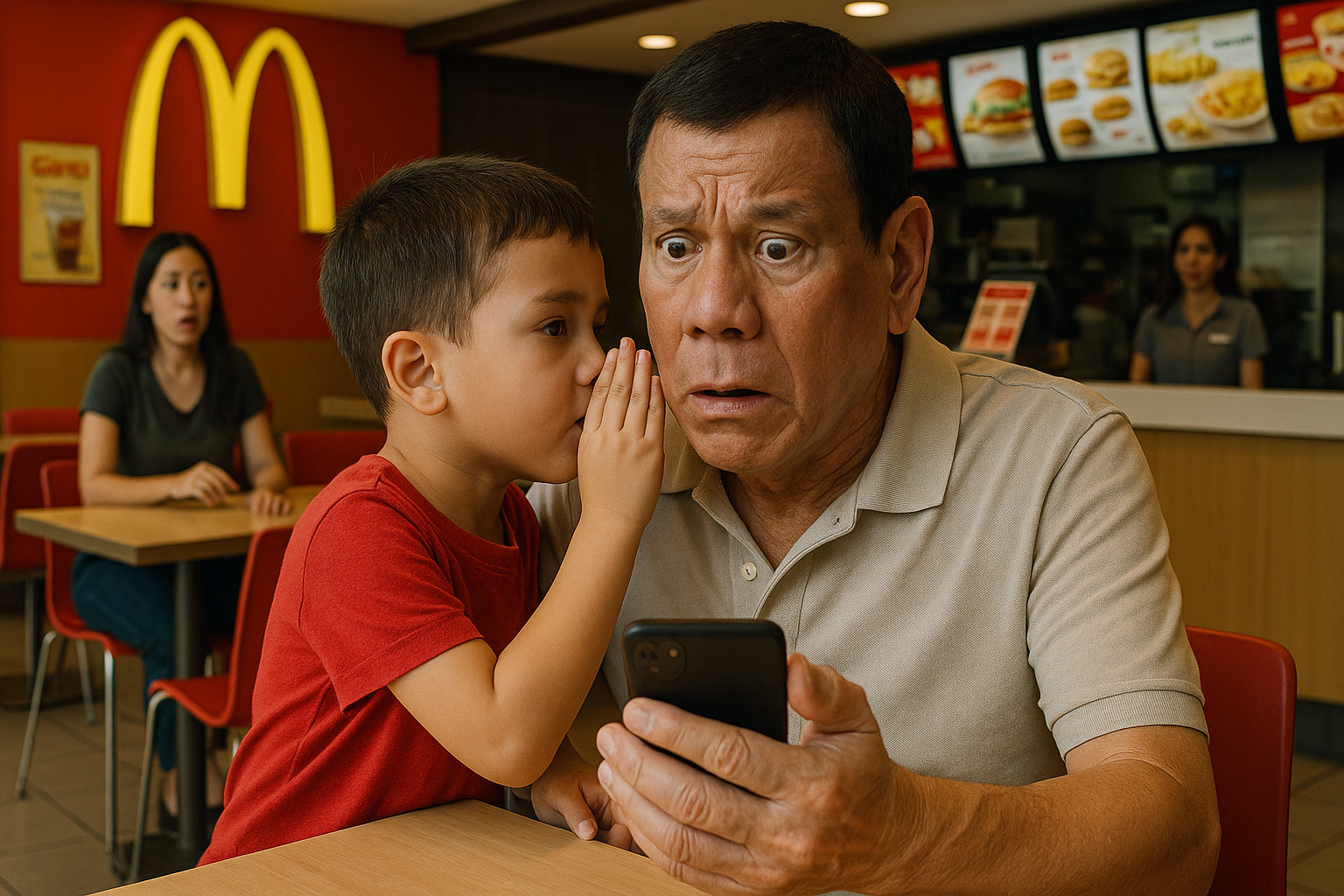 “Ikuwento n’yo kung gaano kahalaga na makinig sa bata, hindi kung gaano kabilis akong tumawag ng 911.” Bago siya umalis, inabot niya kay Miko ang kanyang lumang cellphone na may basag na screen: “Gamitin mo ito pang-aral, huwag pang-tiktok, at kapag may nakita kang mali, pindutin mo agad ang 911—kapag may taong nananahimik pero kailangan ng tulong, ikaw ang magiging boses.” Sakay ng motorsiklong escort ng pulis, umalis si Duterte palabas ng drive-thru; iniwan niya sa loob ng McDo ang amoy ng kape, tunog ng sirenang papalayo, at isang alamat na paulit-ulit ikukuwento sa lungga ng fry station—na minsan daw, dahil sa isang bulong ng limang taong gulang, naligtas ang lahat sa gutom ng kasakiman at natutong makinig ang Maynila sa maliit ngunit matapang na tinig ng isang bata.