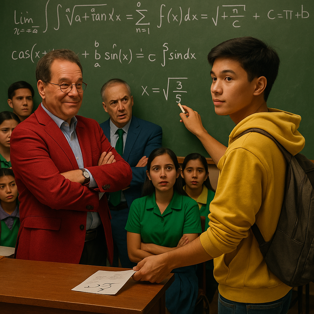 “Mr. Vale,” sabi ni Prof. Romero, kumalansing ang relo nang itaas ang kamay, “dahil kahapon ay pinagtalunan mong mali ang key sa sagot ng department exam, bibigyan ka namin ng pagkakataong patunayan ‘yan. Solve mo ‘to. Dito, sa harap ng lahat.” Iginuhit niya ang mahabang expression sa pisara, may integral, may serye, may mga square root at limit na parang alon sa gitna ng bagyo. “Simple lang—hanapin mo ang x.”
